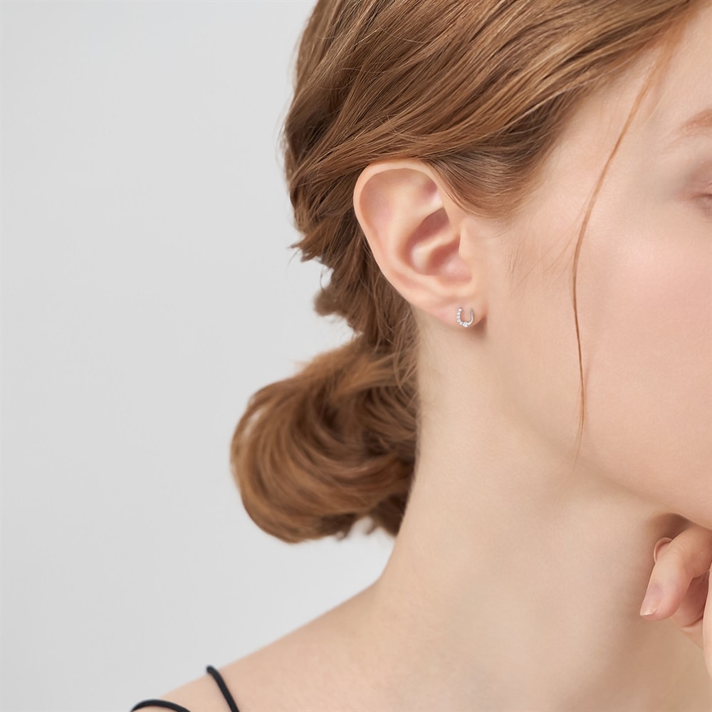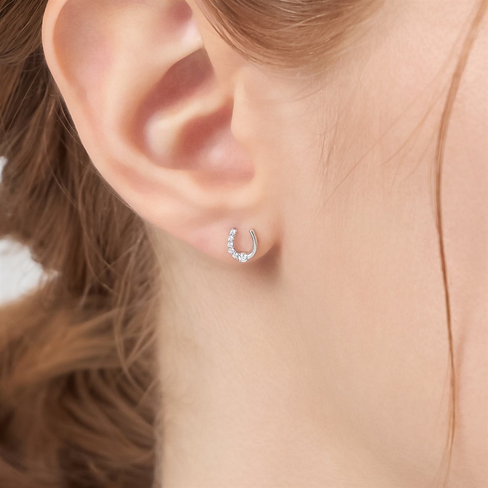はみがき、着替え、今日のピアス -EARFLOW-カラーやモチーフでその日の気分をスイッチ-MOOD-幸運を呼び込むといわれる馬蹄モチーフのピアス。やわらかな地金のラインと、片側に沿ってあしらったキュービックジルコニアがきらめく、アシンメトリーなデザインが魅力です。抜け感のある洗練されたフォルムが、顔周りにすっきりとした印象を与えてくれます。ご自身へのお守りや大切な方へのギフトにもおすすめの、日常のスタイリングにさり気なく寄り添うアイテムです。【同コレクションのアイテムはこちら】