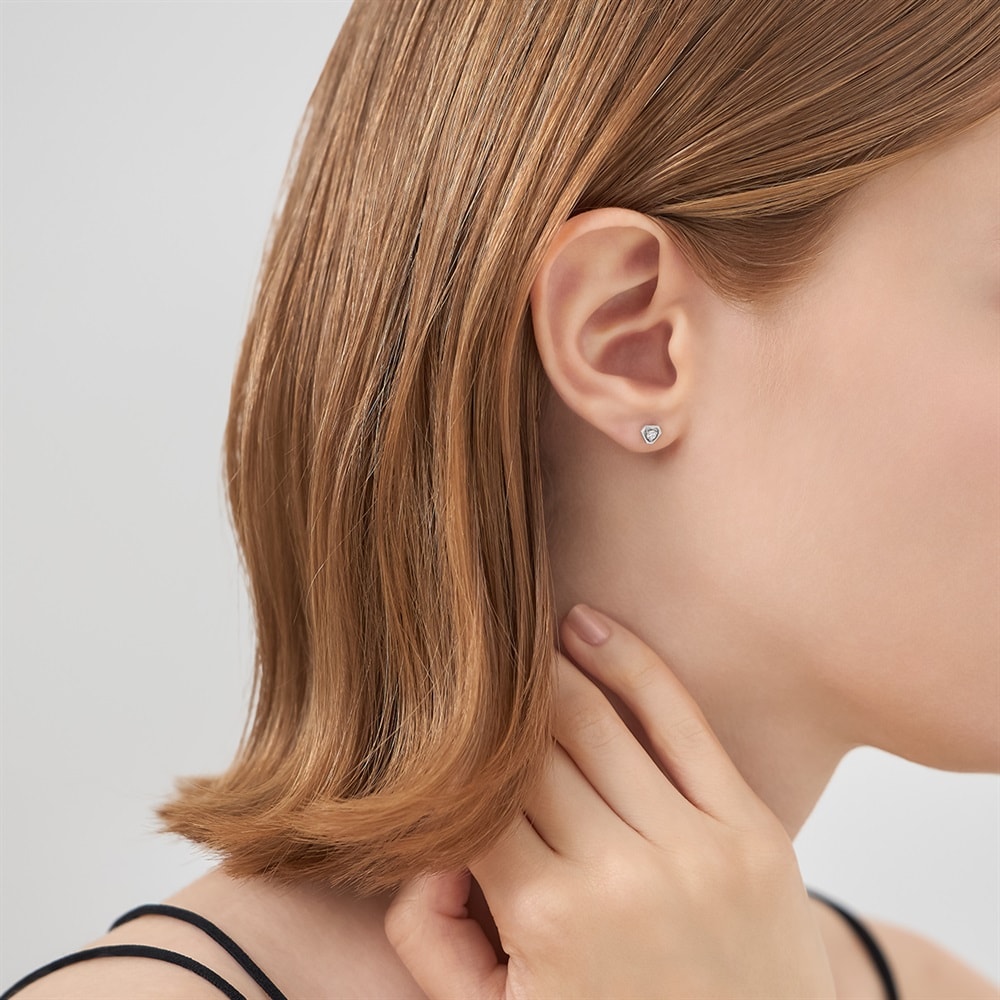 はみがき、着替え、今日のピアス -EARFLOW-カラーやモチーフでその日の気分をスイッチ-MOOD-ハートモチーフをシャープなラインの枠で囲んだ、洗練された印象のピアス。ロジウムコーティングをほどこした凛とした輝きに、1粒のキュービックジルコニアが上品にきらめきます。甘すぎないハートのかたちが耳元に程よいアクセントを添え、さり気ないサイズ感ながらもしっかりとした存在感を放ちます。オンオフ問わず活躍し、コーディネートを格上げしてくれるアイテムです。【同コレクションのアイテムはこちら】