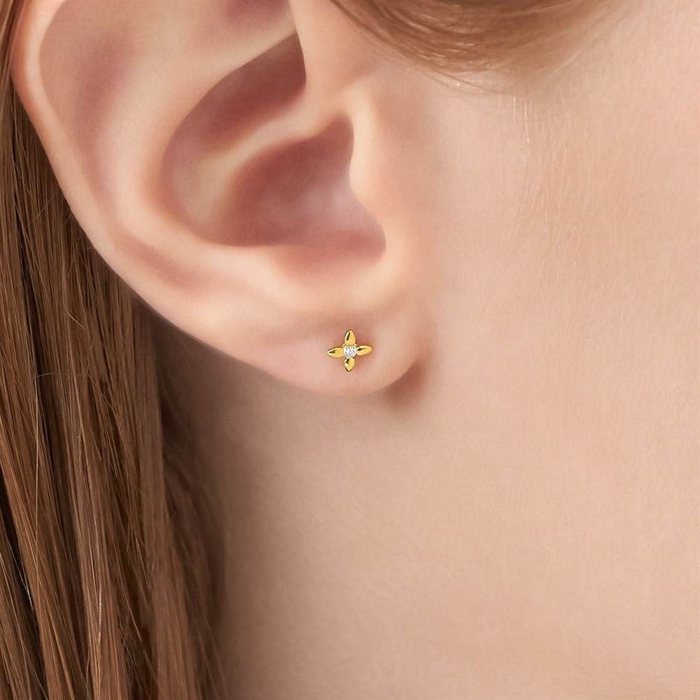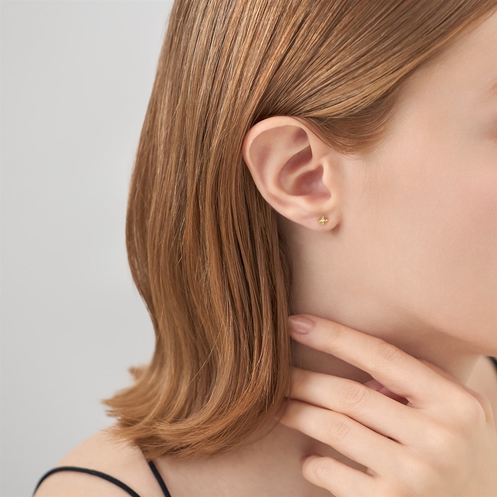はみがき、着替え、今日のピアス -EARFLOW-カラーやモチーフでその日の気分をスイッチ-MOOD-ふっくらとしたフォルムが可憐な印象を与える、お花モチーフのピアス。華やかなイエローゴールドカラーに、1粒のキュービックジルコニアが中央で繊細にきらめきます。さり気ないサイズ感ながらも、立体的なディテールが耳元に華やかさをプラス。どんなコーディネートにもなじみやすく、日常のスタイリングを優しく彩るアイテムです。【同コレクションのアイテムはこちら】