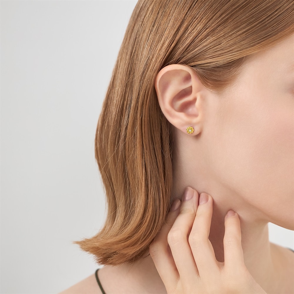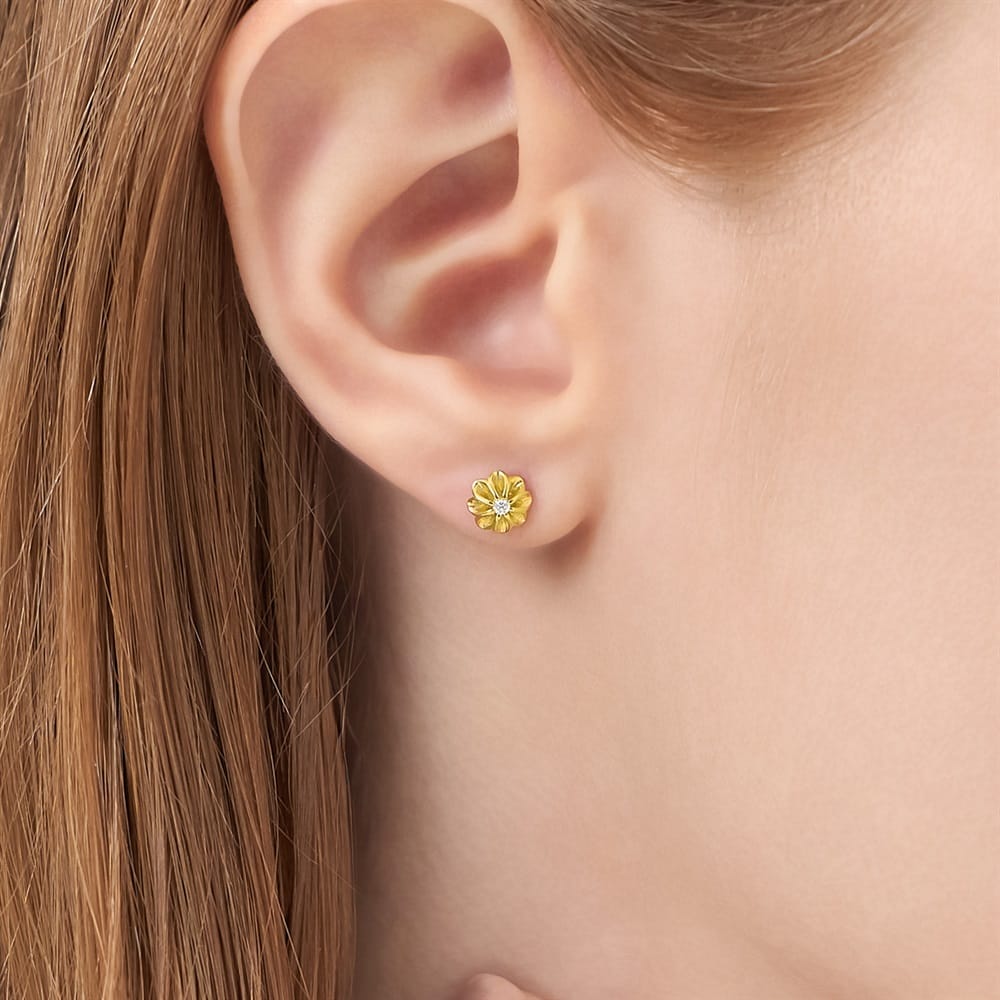 はみがき、着替え、今日のピアス -EARFLOW-カラーやモチーフでその日の気分をスイッチ-MOOD-8枚の花びらを立体的に表現した、可憐なお花モチーフのピアス。華やかなイエローゴールドカラーの輝きが、中央に配した1粒のキュービックジルコニアを引き立てます。顔周りを明るく彩る程よい存在感がありながら、さり気ないサイズ感で日常のスタイリングになじみやすいのも魅力。どんな装いにも合わせやすく、耳元に上品な華やかさをプラスしてくれるアイテムです。【同コレクションのアイテムはこちら】