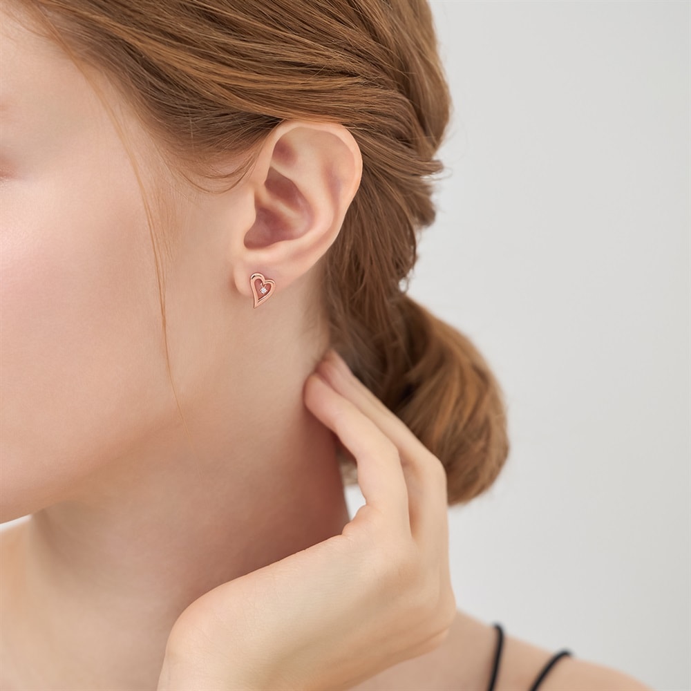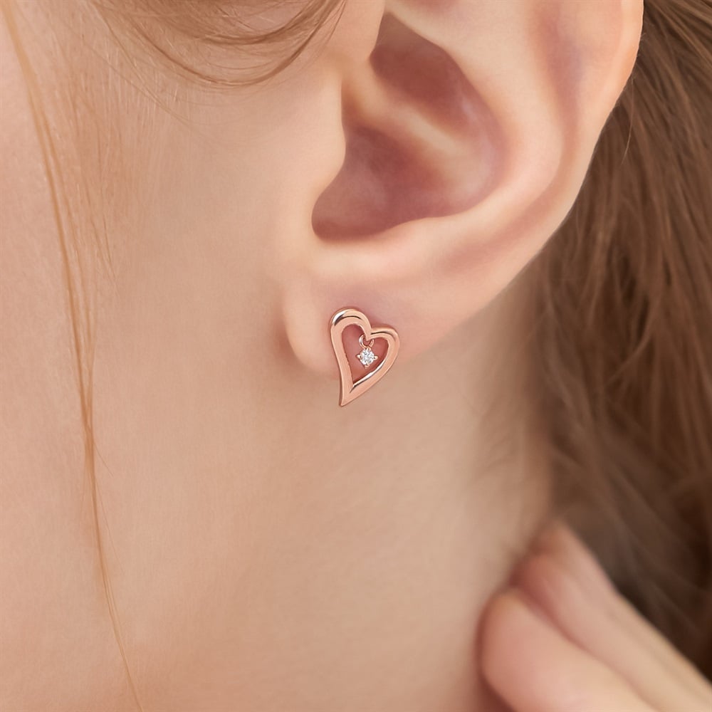 はみがき、着替え、今日のピアス -EARFLOW-カラーやモチーフでその日の気分をスイッチ-MOOD-愛らしいオープンハートの中に、1粒のキュービックジルコニアが揺れるピアス。肌なじみのよいピンクゴールドカラーが、顔周りを優しく彩ります。動きに合わせてキラキラときらめくデザインが、愛らしさを引き立てるアクセントに。さり気ないサイズ感で日常使いしやすく、耳元にやわらかな印象を添えてくれるアイテムです。【同コレクションのアイテムはこちら】