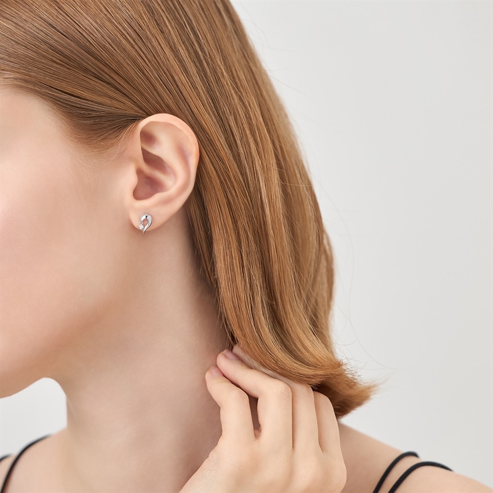はみがき、着替え、今日のピアス -EARFLOW-カラーやモチーフでその日の気分をスイッチ-MOOD-流れるようなやわらかなラインが洗練された印象を与えるピアス。ロジウムコーティングをほどこした凛とした輝きに、1粒のキュービックジルコニアが揺れるデザインです。動きに合わせてキラキラときらめく輝きが、顔周りを華やかに彩ります。さり気ないサイズ感でどんなコーディネートにもなじみやすく、毎日のスタイリングに気品を添えてくれるアイテムです。【同コレクションのアイテムはこちら】
