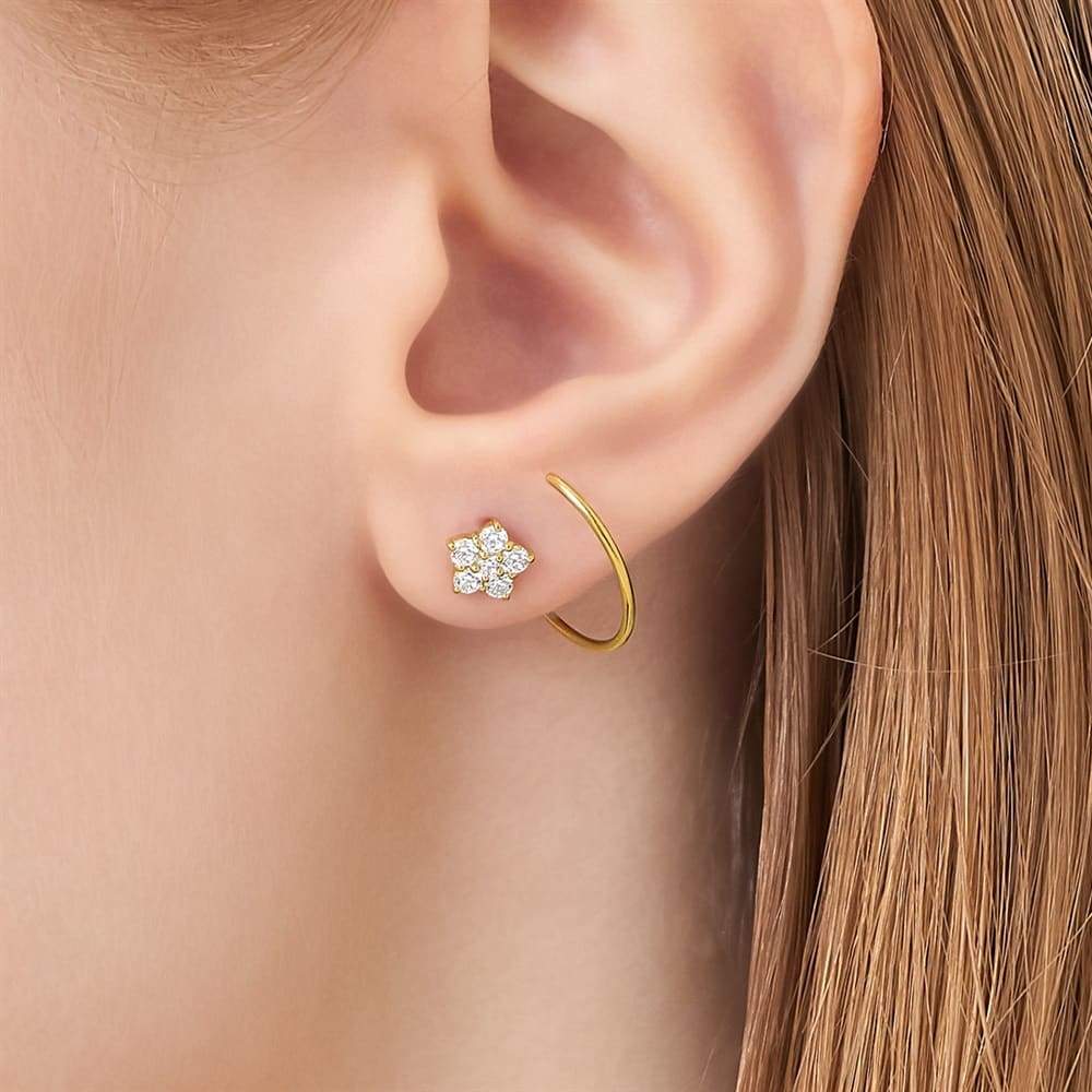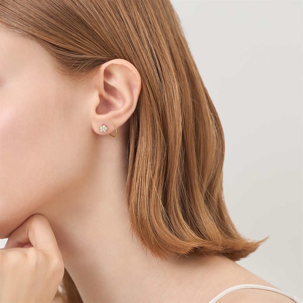 はみがき、着替え、今日のピアス -EARFLOW-カラーやモチーフでその日の気分をスイッチ-MOOD-「希望」や「願い事」を叶えるといわれる星モチーフの片耳用ピアス。華やかなイエローゴールドカラーに、6石のキュービックジルコニアを寄せてひとつの大きな星をかたちづくった贅沢なデザインです。耳元に寄り添うようなさり気ないサイズ感ながらも、キラキラとした輝きが顔周りを明るく彩ります。日常のスタイリングに遊び心を添えてくれる、ご自身へのお守りや大切なひとへのギフトにもおすすめのアイテムです。※強い力が加わると変形する可能性がありますので、お取り扱いにはご注意ください。【同コレクションのアイテムはこちら】