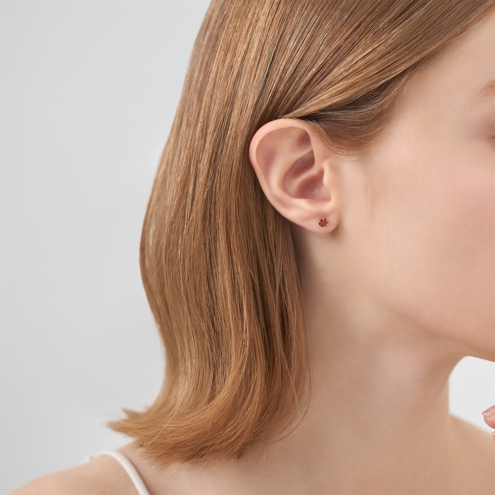 はみがき、着替え、今日のピアス -EARFLOW-自分仕様にカスタマイズ 選ぶ楽しさをその手に-CUSTOM FIT-イエローゴールドカラーの地金に、深みのある赤色が美しい、1月誕生石ガーネットをあしらったピアス。1粒のガーネットをシンプルに引き立てるデザインが、顔周りに上品な彩りを添えます。「真実」や「情熱」の意味を持つといわれるガーネットを配したジュエリーは、大切なひとへのギフトやご自身のお守りとしてもおすすめです。華やかなイエローゴールドカラーの輝きが天然石の美しさを際立たせ、さり気ないサイズ感ながらも気品ある耳元を演出します。※天然石・天然素材を使用しているため、実際の色味や風合いが異なる場合がございます。【同コレクションのアイテムはこちら】