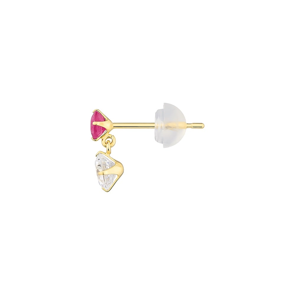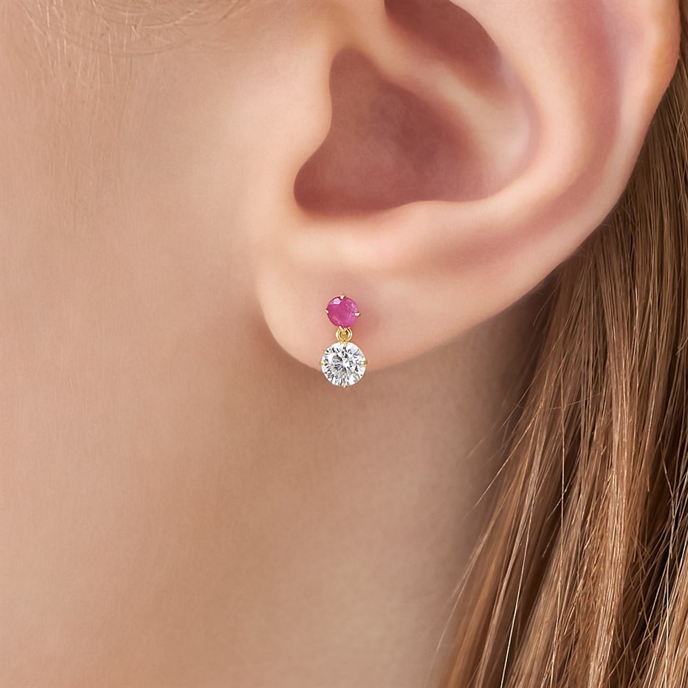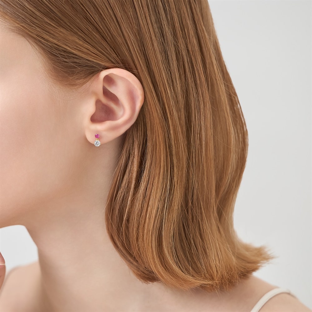 はみがき、着替え、今日のピアス -EARFLOW-自分仕様にカスタマイズ 選ぶ楽しさをその手に-CUSTOM FIT-イエローゴールドカラーの地金に、鮮やかなレッドが目を惹くルビーとクリアな輝きのキュービックジルコニアをあしらったピアス。2石の異なるきらめきが縦に並ぶ洗練されたデザインが、顔周りを印象的に演出します。「情熱」や「深い愛情」の意味を持つといわれるルビーを配したジュエリーは、大切なひとへのギフトやご自身のお守りとしてもおすすめです。華やかなイエローゴールドの輝きがルビーの彩りを引き立て、さり気ないサイズ感ながらも上品な耳元を演出します。※天然石・天然素材を使用しているため、実際の色味や風合いが異なる場合がございます。【同コレクションのアイテムはこちら】
