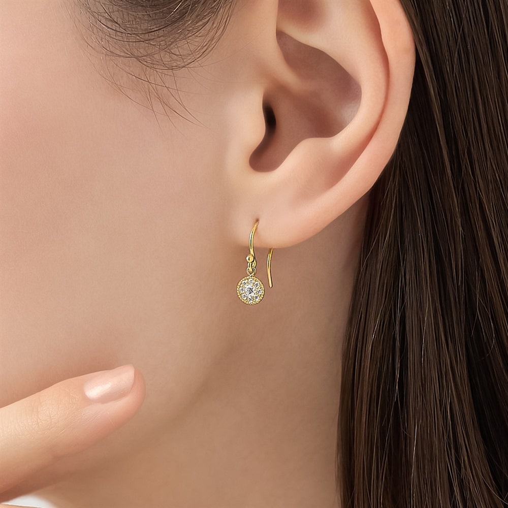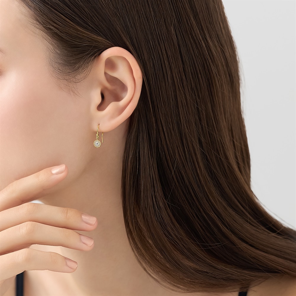 はみがき、着替え、今日のピアス -EARFLOW-フォーマルにも映える華やかさギフトにも最適-OCCASION-ミル打ちで縁取ったサークルに、きらめくキュービックジルコニアを敷き詰めたイエローゴールドカラーのピアス。華やかなデザインのため、顔周りを明るく魅せてくれます。カジュアルなスタイルからオフィススタイルまで幅広くご使用いただけます。【同コレクションのアイテムはこちら】