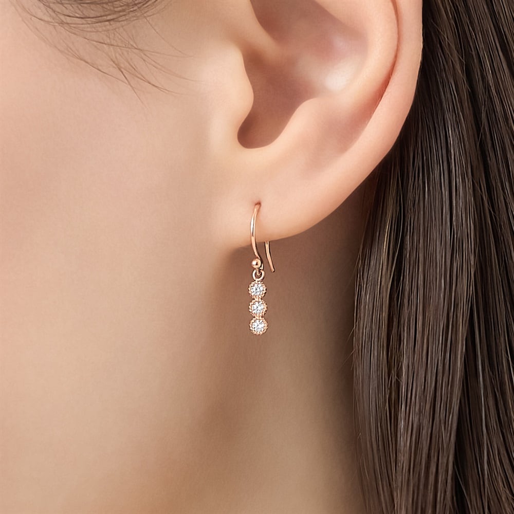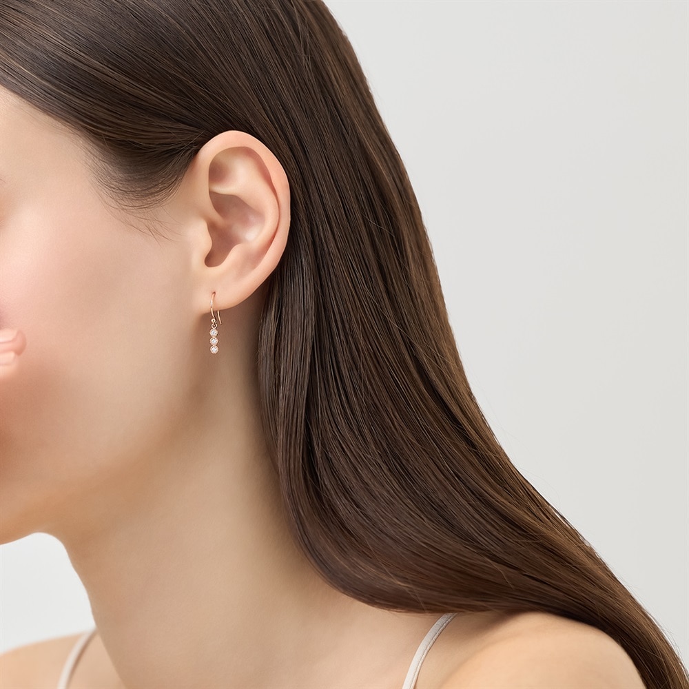 はみがき、着替え、今日のピアス -EARFLOW-フォーマルにも映える華やかさギフトにも最適-OCCASION-3石のきらめくキュービックジルコニアが縦に連なり、動くたびに揺れるピンクゴールドカラーのピアス。縦に伸びるシルエットは、顔周りをすっきりとした印象にしてくれます。シーンを問わずに身に着けることができ、大切な方へのギフトにおすすめです。【同コレクションのアイテムはこちら】