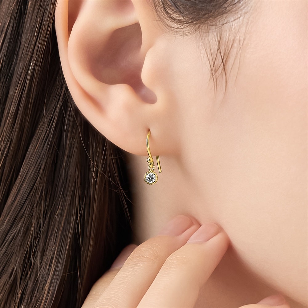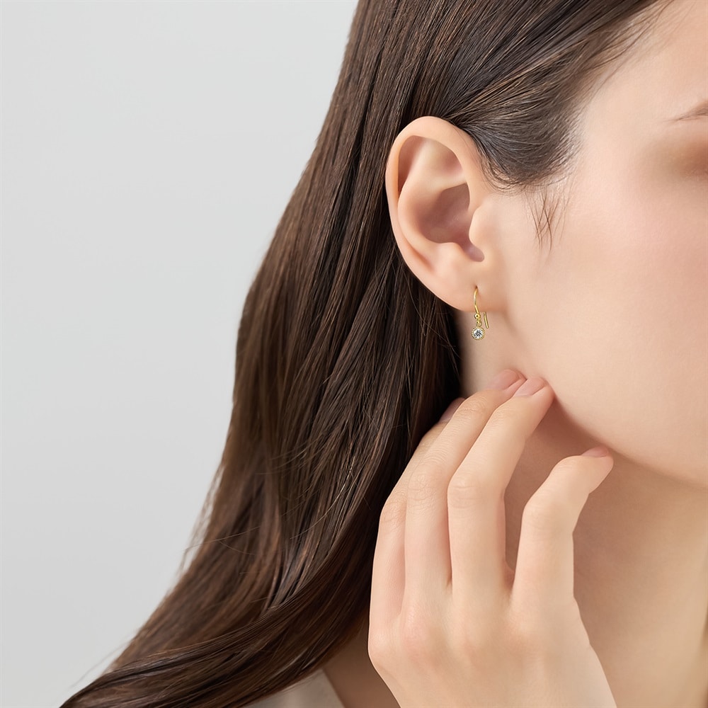 はみがき、着替え、今日のピアス -EARFLOW-フォーマルにも映える華やかさギフトにも最適-OCCASION-きらめくキュービックジルコニアをミル打ちで囲んだイエローゴールドカラーのピアス。動くたびにキュービックジルコニアが耳元で揺れ、顔周りを明るく魅せます。シーンを問わずに身に着けることができるため、大切な方へのギフトにおすすめです。【同コレクションのアイテムはこちら】