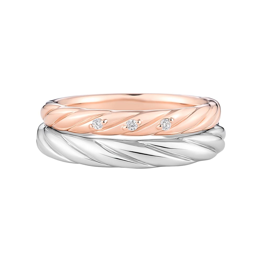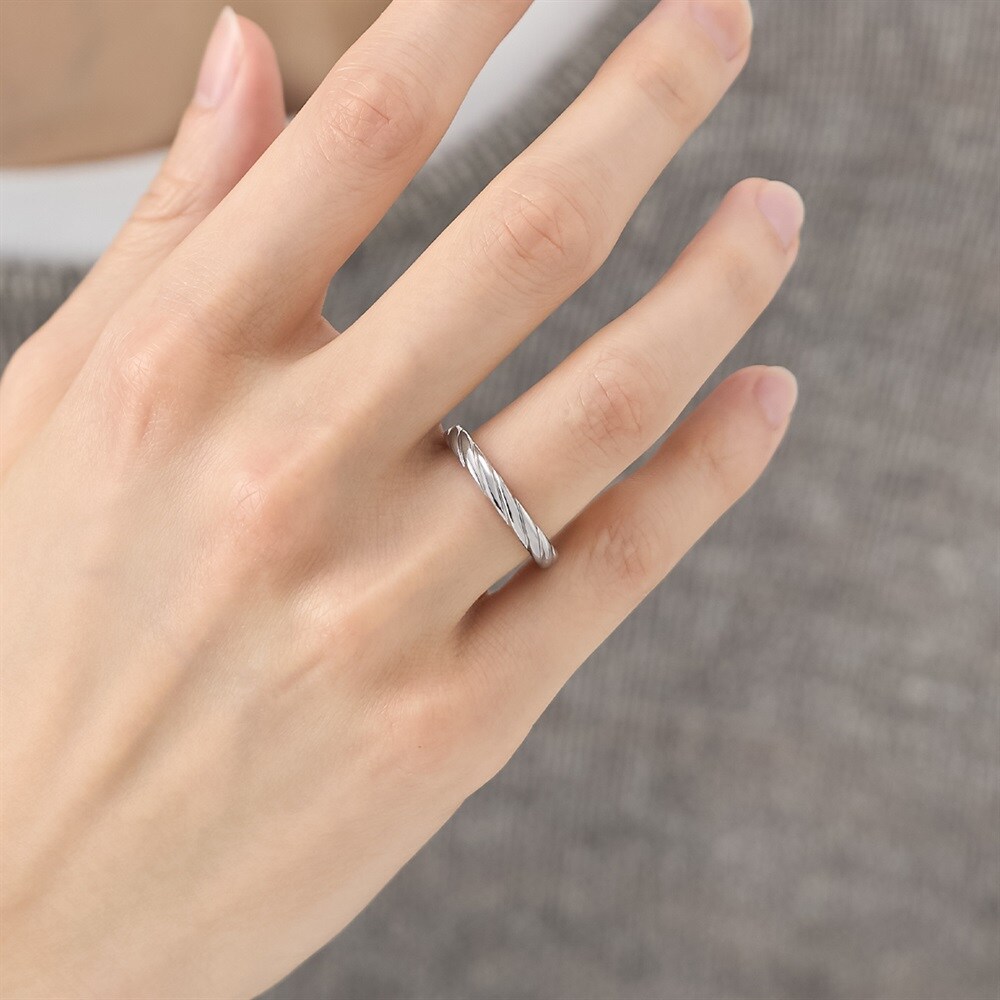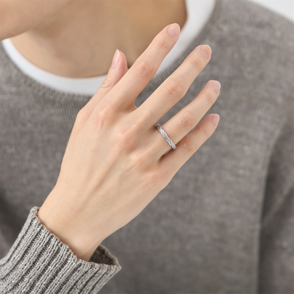 ひねりデザインのペアリング。ひねりデザインは、「永遠の愛」「絆」の意味を持ちます。トレンド感のあるデザインは、オフィスシーンからお出かけシーンまで、幅広くお使いいただけます。シンプルなデザインのため、大切な方へのギフトにおすすめです。※ボリューム(幅)のあるリングは、通常より着用時にサイズが小さく感じる場合がございます。