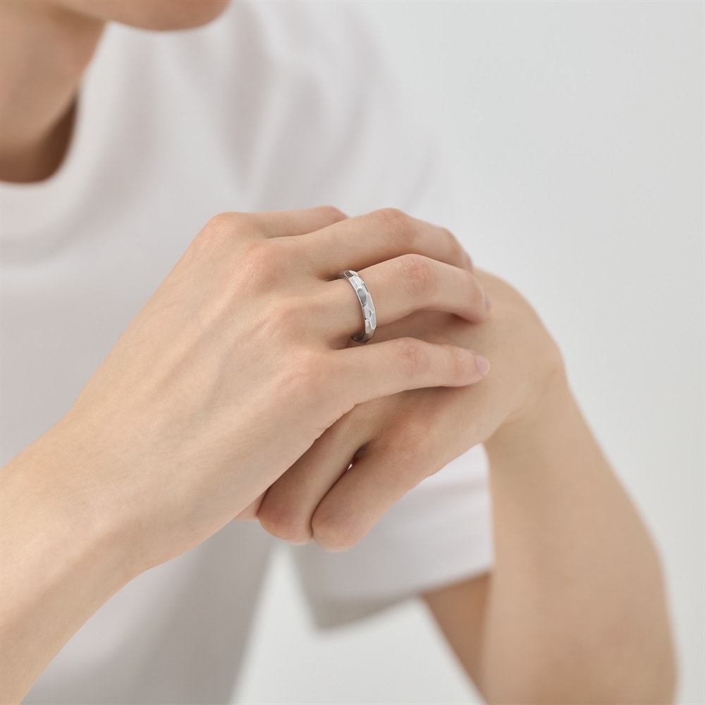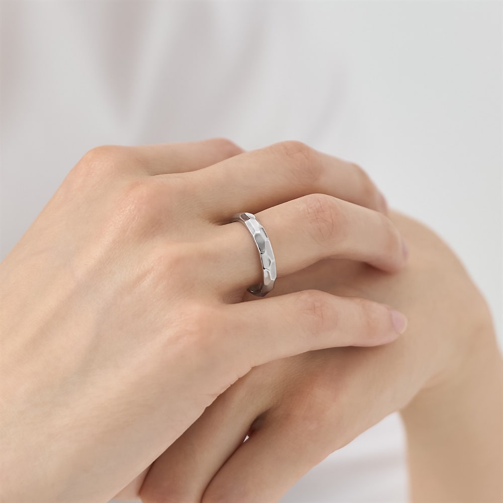 地金のテクスチャーがきらめく、ストレートデザインのペアリング。トレンド感のあるシンプルなデザインのため、日常的に身に着けることができます。ファッションアイテムとしても楽しむことができ、大切な方へのギフトにおすすめです。※ボリューム(幅)のあるリングは、通常より着用時にサイズが小さく感じる場合がございます。