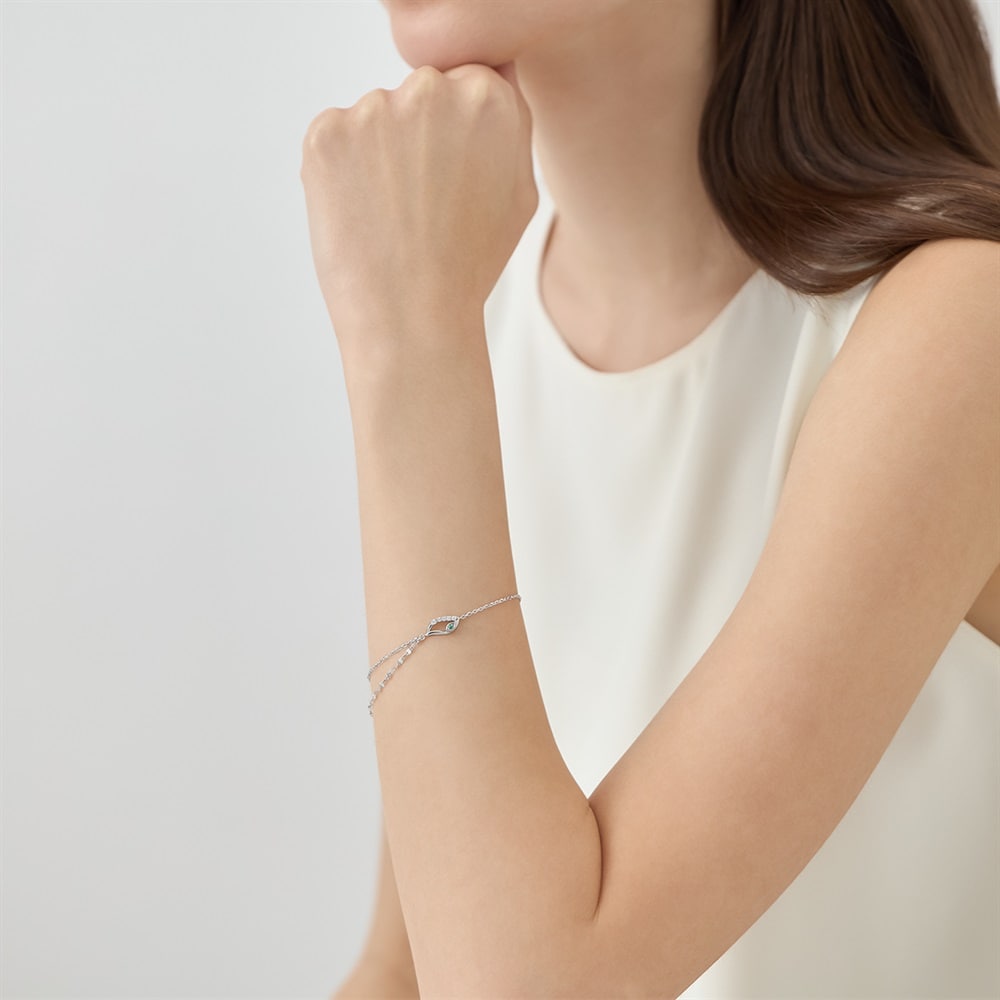 5月の誕生石であるエメラルドが輝くバースデージュエリー。抜け感のあるリーフモチーフに、エメラルドを留めたリーフ型の石座がポイントのブレスレット。「希望」や「幸運」の意味を持つエメラルドに、同じく「希望」の意味を持つリーフモチーフを合わせたデザインは、ご自身のお守りジュエリーとしてもおすすめです。ペタルチェーンがやさしく手元できらめき、存在感を演出してくれます。※天然石・天然素材を使用しているため、実際の色味や風合いが異なる場合がございます。