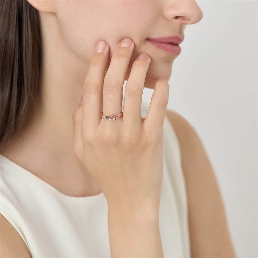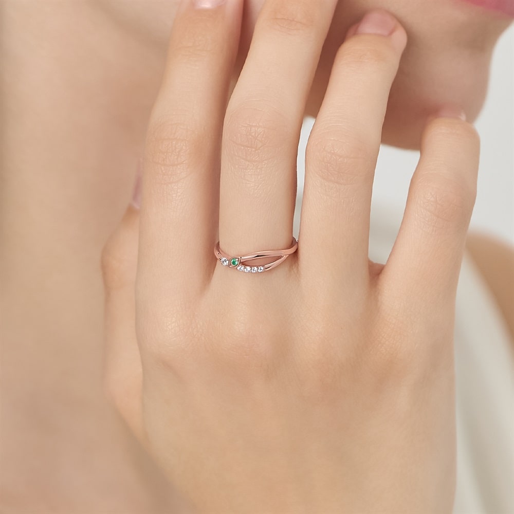 5月の誕生石であるエメラルドが輝くバースデージュエリー。なめらかなラインが交わるデザインは、指を長く美しく見せ、手元全体の印象を格上げします。「希望」や「幸運」の意味を持つエメラルドに、同じく「希望」の意味を持つリーフモチーフを合わせたデザインは、ご自身のお守りジュエリーとしてもおすすめです。ベーシックなデザインのため、オフィスシーンからお出かけまで幅広くお使いいただけます。※天然石・天然素材を使用しているため、実際の色味や風合いが異なる場合がございます。※ボリューム(幅)のあるリングは、通常より着用時にサイズが小さく感じる場合がございます。