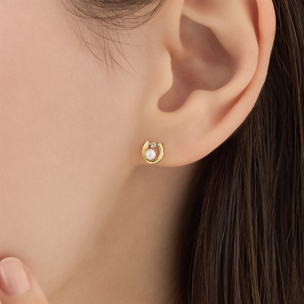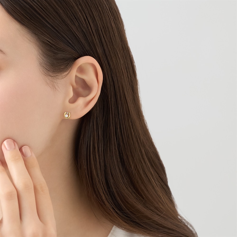はみがき、着替え、今日のピアス -EARFLOW-フォーマルにも映える華やかさギフトにも最適-OCCASION-「幸せが溜まる」と言われる馬蹄モチーフに、パールを組み合わせたシンプルなデザインのピアス。肌に馴染むK10イエローゴールドが顔周りに明るさと大人らしさをプラスしてくれます。流行に左右されないデザインのため、毎日着けるお守りジュエリーとしておすすめ。※天然石・天然素材を使用しているため、実際の色味や風合いが異なる場合がございます。【同コレクションのアイテムはこちら】