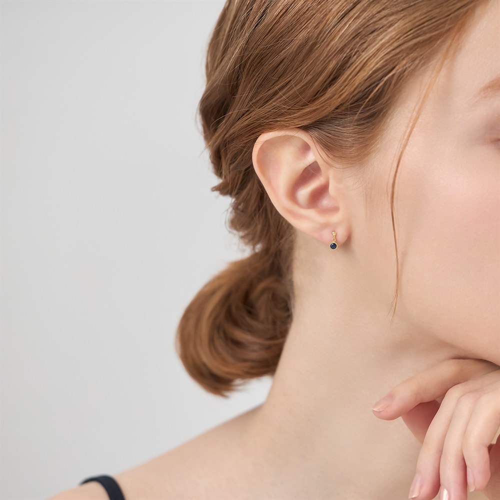 はみがき、着替え、今日のピアス -EARFLOW-自分仕様にカスタマイズ 選ぶ楽しさをその手に-CUSTOM FIT-K10イエローゴールドの地金に、深く気品のある青色が美しいサファイアをあしらった上品なピアス。ミル打ちをほどこしたクラシカルなかたちのフレームの中でサファイアが揺れ、顔周りを知的な印象に彩ります。「慈愛」や「誠実」の意味を持つといわれる、9月誕生石サファイアを配したジュエリーは、大切なひとへのギフトやご自身のお守りとしてもおすすめです。K10イエローゴールドの明るい輝きがサファイアの彩りを引き立て、さり気ないサイズ感ながらも洗練された耳元を演出します。※天然石・天然素材を使用しているため、実際の色味や風合いが異なる場合がございます。【同コレクションのアイテムはこちら】
