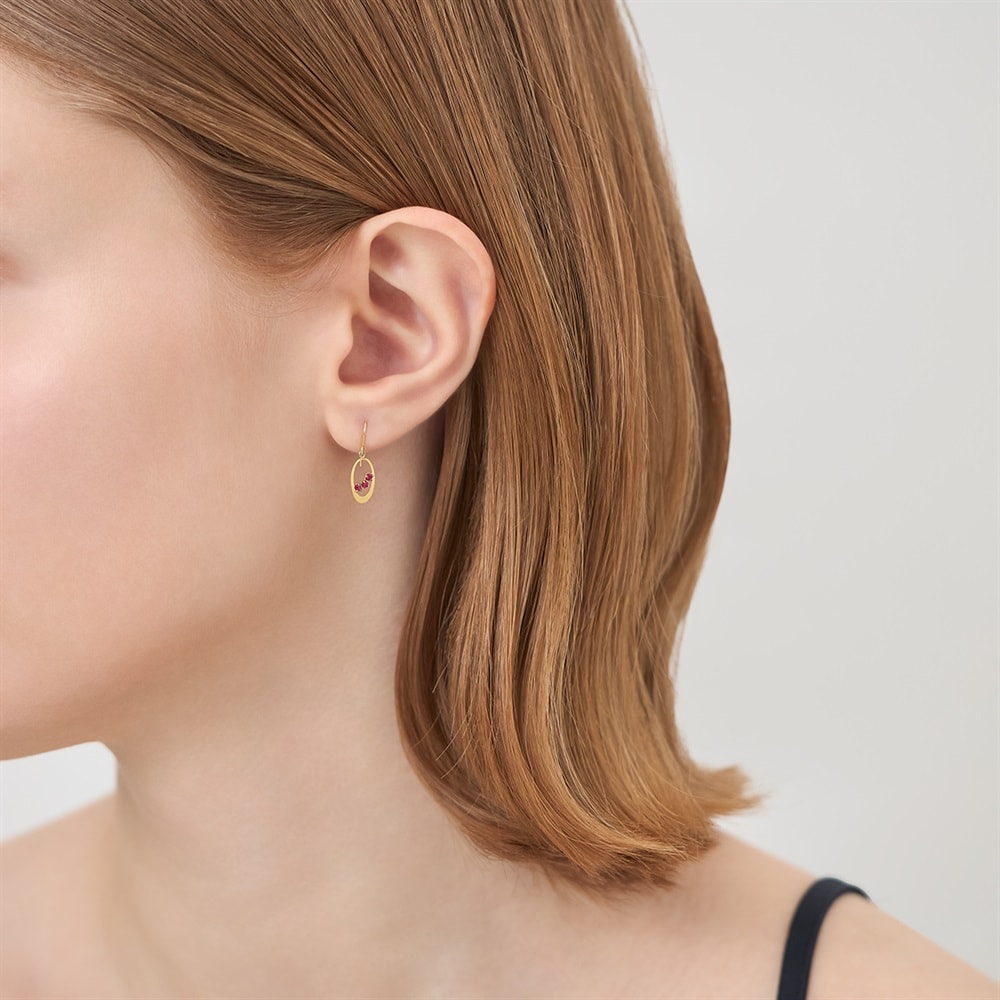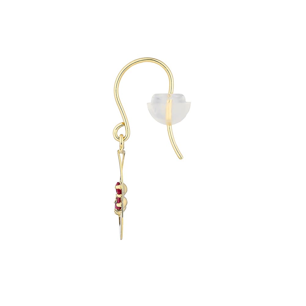 はみがき、着替え、今日のピアス -EARFLOW-自分仕様にカスタマイズ 選ぶ楽しさをその手に-CUSTOM FIT-K10イエローゴールドの地金に、鮮やかなレッドが目を惹くルビーをあしらったアメリカンピアス。サークルモチーフの中で3石のルビーが繊細にきらめき、顔周りを華やかに彩ります。「情熱」や「深い愛情」の意味を持つといわれる、7月誕生石ルビーを配したジュエリーは、大切なひとへのギフトやご自身のお守りとしてもおすすめです。※天然石・天然素材を使用しているため、実際の色味や風合いが異なる場合がございます。【同コレクションのアイテムはこちら】