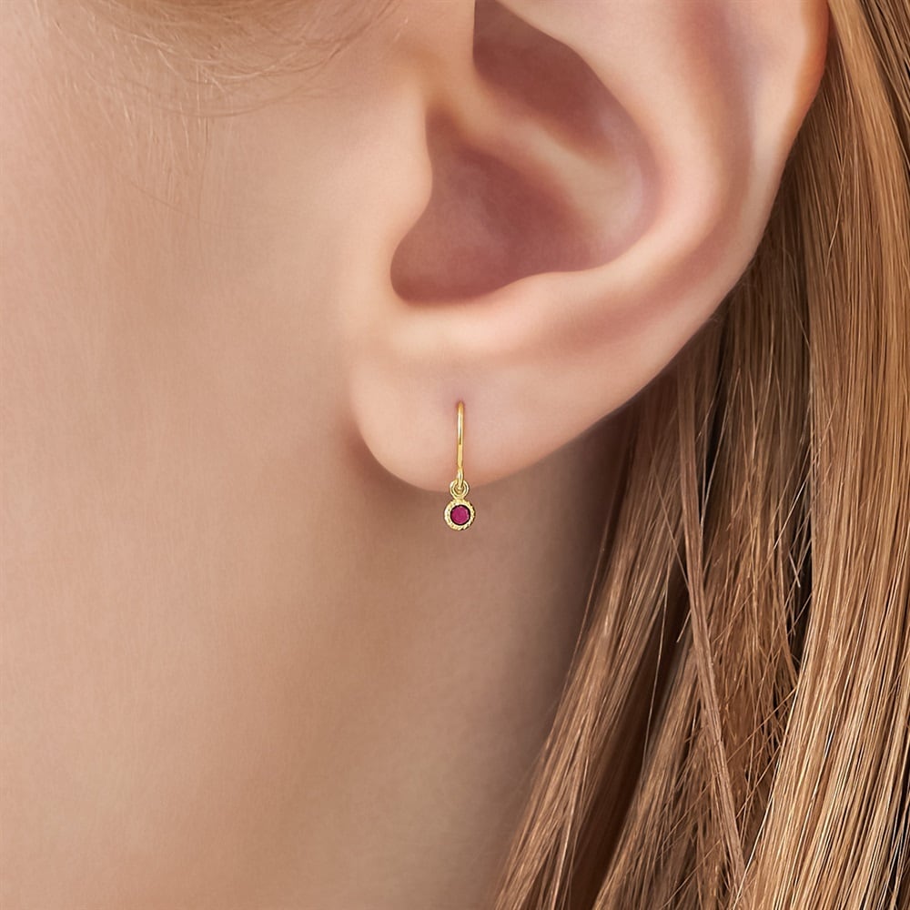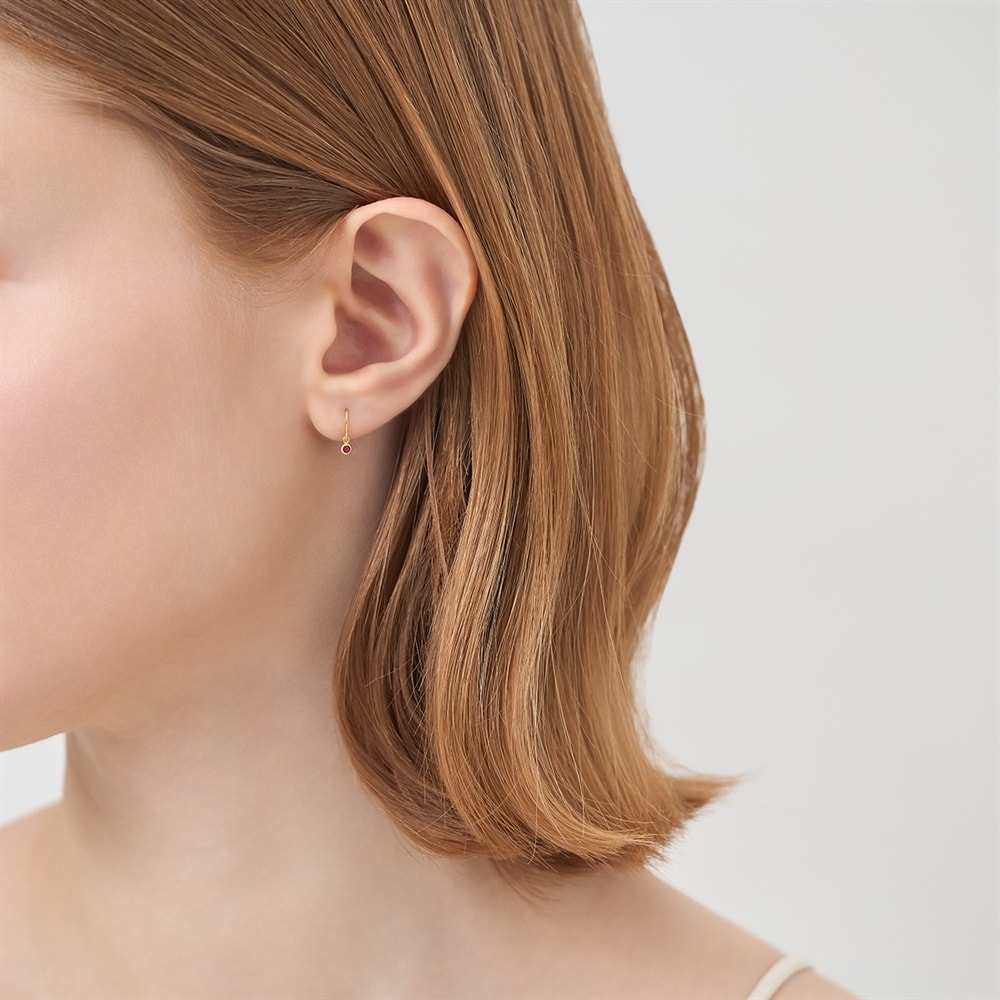 はみがき、着替え、今日のピアス -EARFLOW-自分仕様にカスタマイズ 選ぶ楽しさをその手に-CUSTOM FIT-K10イエローゴールドの地金に、鮮やかなレッドが目を惹くルビーをあしらったアメリカンピアス。ミル打ちをほどこしたクラシカルなかたちのフレームの中でルビーが揺れ、顔周りを華やかに彩ります。「情熱」や「深い愛情」の意味を持つといわれる、7月誕生石ルビーを配したジュエリーは、大切なひとへのギフトやご自身のお守りとしてもおすすめです。※天然石・天然素材を使用しているため、実際の色味や風合いが異なる場合がございます。【同コレクションのアイテムはこちら】