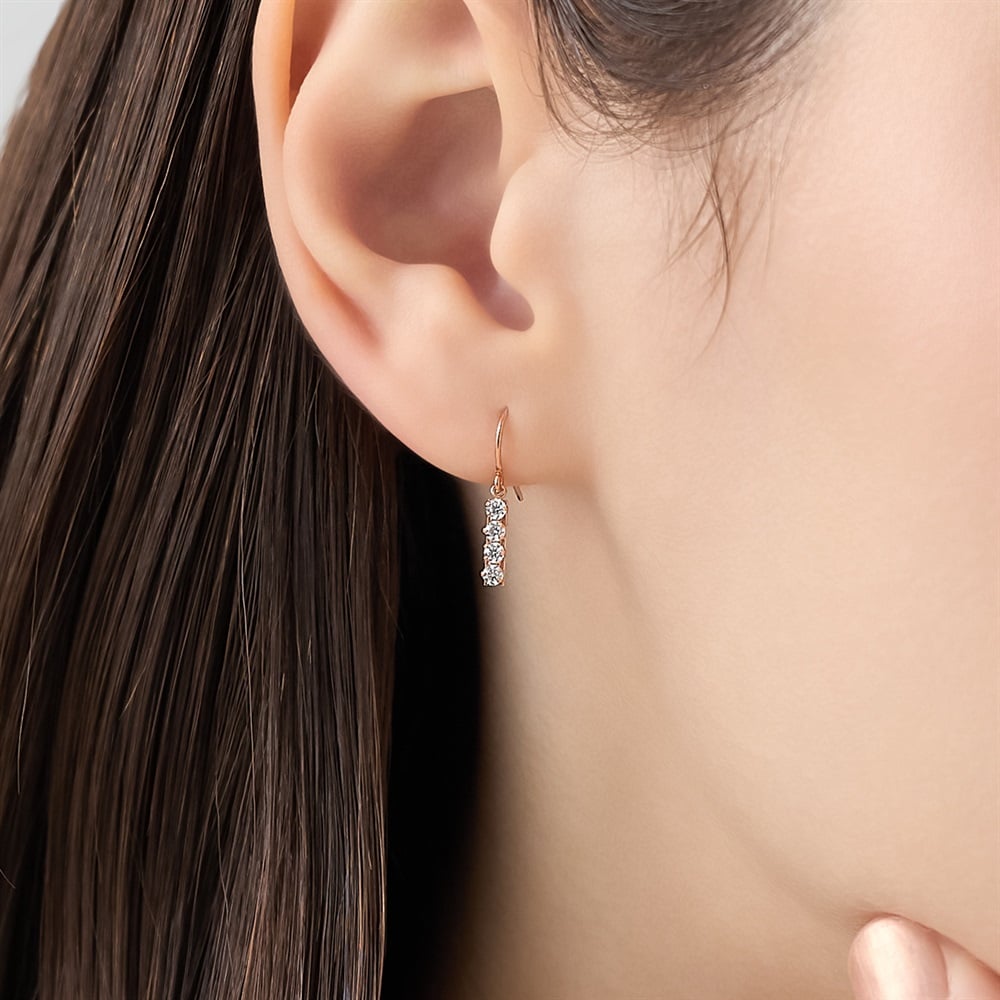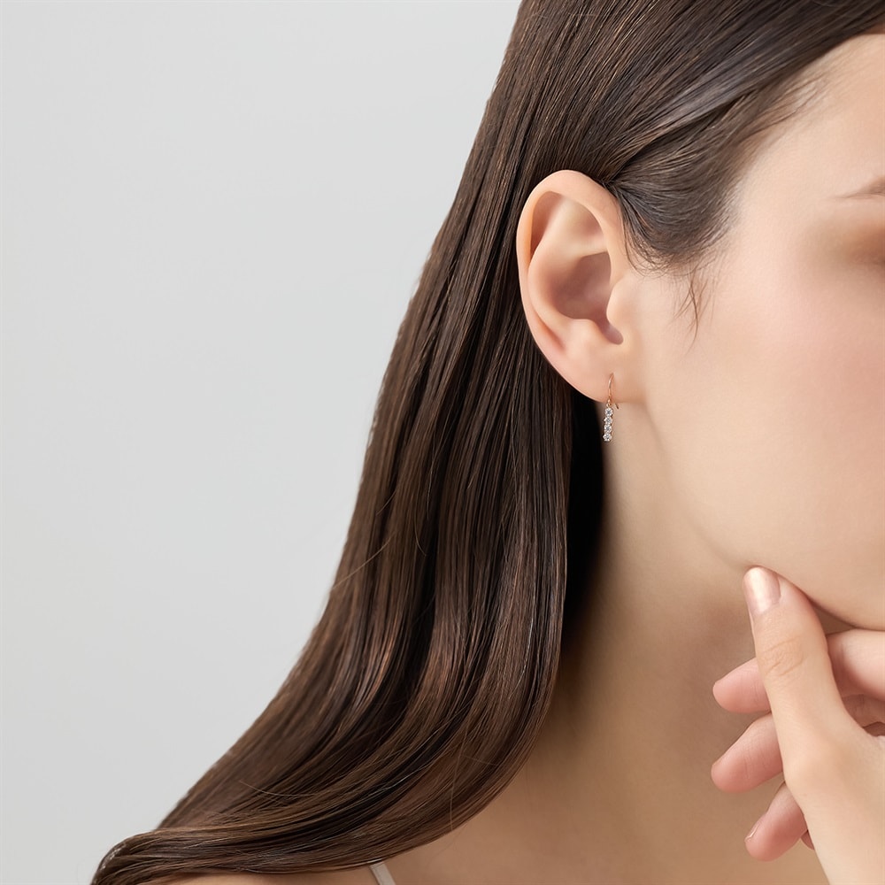 はみがき、着替え、今日のピアス -EARFLOW-フォーマルにも映える華やかさギフトにも最適-OCCASION-縦に連なる4石のキュービックジルコニアが耳元できらめくフックピアス。縦のラインは、顔周りをすっきりとした印象に演出します。主張しすぎないサイズ感でオンオフ問わず活躍するアイテムです。【同コレクションのアイテムはこちら】
