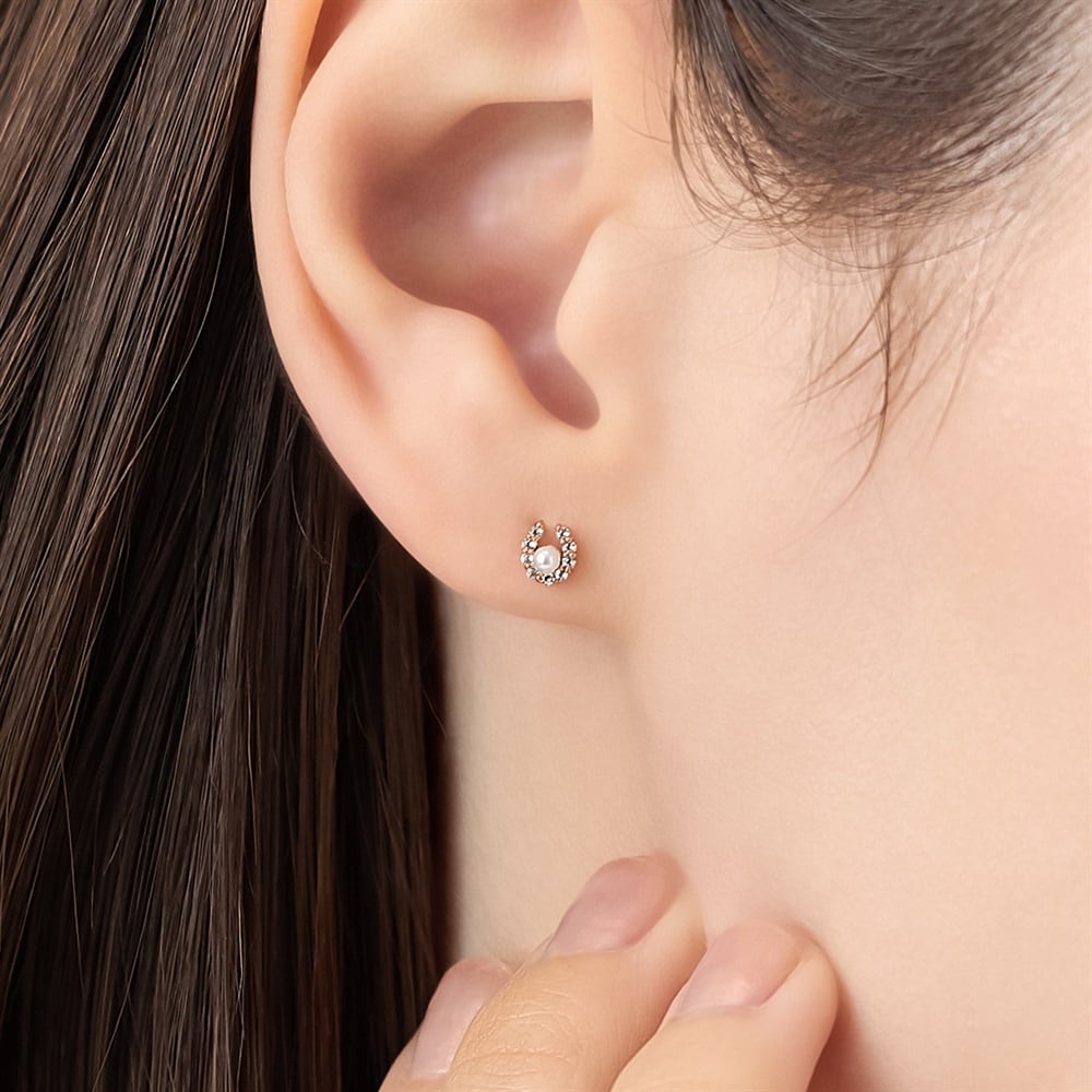 はみがき、着替え、今日のピアス -EARFLOW-フォーマルにも映える華やかさギフトにも最適-OCCASION-馬蹄にキュービックジルコニアが並んだ華やかなピアス。ワンポイントのパールが、顔周りを明るく華やかに見せます。お守りジュエリーとしてまた大切な想いを届けるギフトとしても最適です。※天然石・天然素材を使用しているため、実際の色味や風合いが異なる場合がございます。【同コレクションのアイテムはこちら】