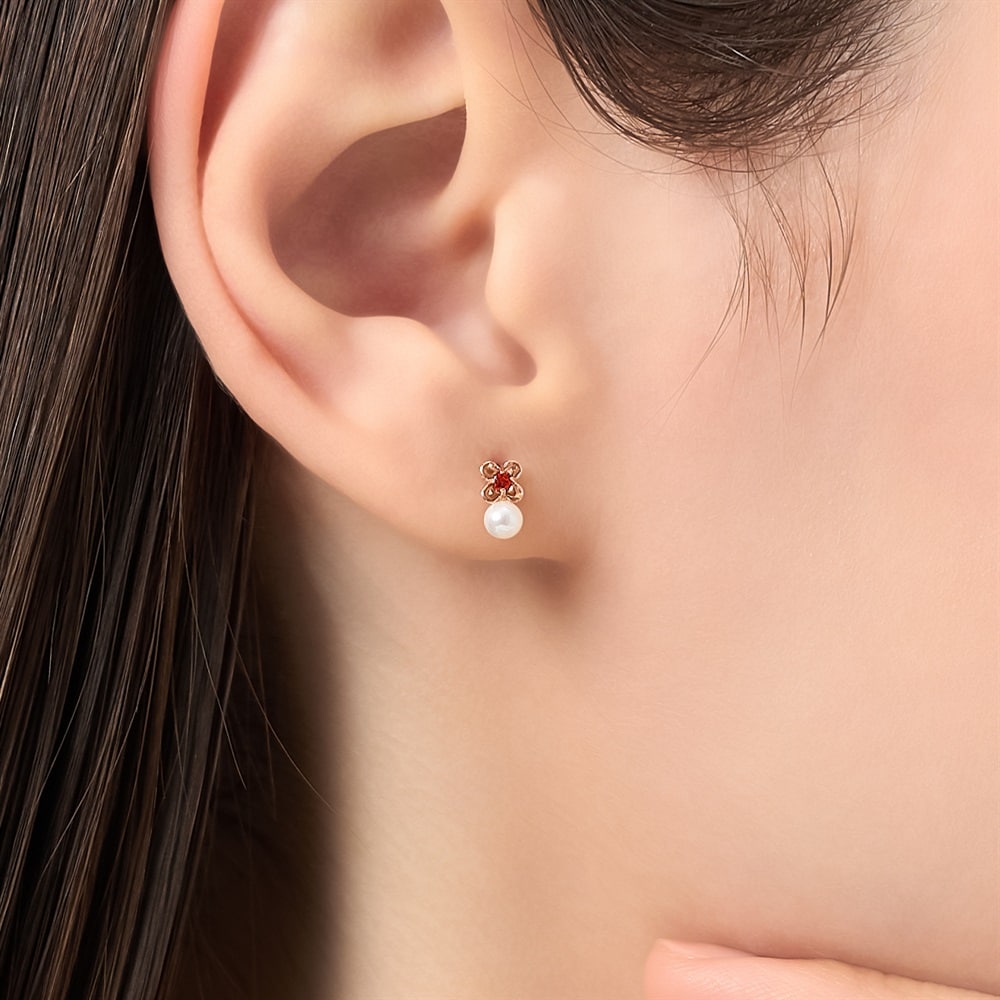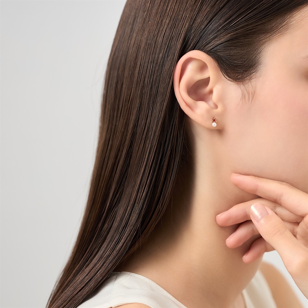 はみがき、着替え、今日のピアス -EARFLOW-自分仕様にカスタマイズ 選ぶ楽しさをその手に-CUSTOM FIT-K10ピンクゴールドの地金に、鮮やかなガーネットと淡水パールをあしらった可憐な印象のピアス。お花のようなかたちにセットされたガーネットが耳元に温かみのある彩りを添え、その下で寄り添うパールが上品な輝きを放ちます。「真実」や「情熱」の意味を持つといわれる、1月誕生石ガーネットを配したジュエリーは、大切なひとへのギフトやご自身のお守りとしてもおすすめです。※天然石・天然素材を使用しているため、実際の色味や風合いが異なる場合がございます。【同コレクションのアイテムはこちら】