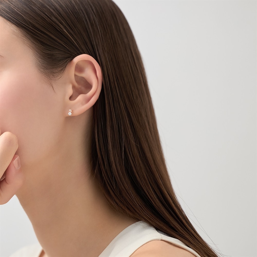 はみがき、着替え、今日のピアス -EARFLOW-自分仕様にカスタマイズ 選ぶ楽しさをその手に-CUSTOM FIT-K10ピンクゴールドの地金に、幻想的な輝きを放つムーンストーンと淡水パールをあしらった可憐な印象のピアス。お花のようなかたちにセットされたムーンストーンが耳元に柔らかな彩りを添え、その下で寄り添うパールが上品な輝きを放ちます。「健康」や「幸運」の意味を持つといわれる、6月誕生石ムーンストーンを配したジュエリーは、大切なひとへのギフトやご自身のお守りとしてもおすすめです。※天然石・天然素材を使用しているため、実際の色味や風合いが異なる場合がございます。【同コレクションのアイテムはこちら】