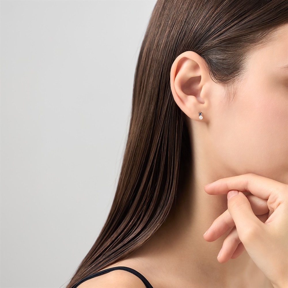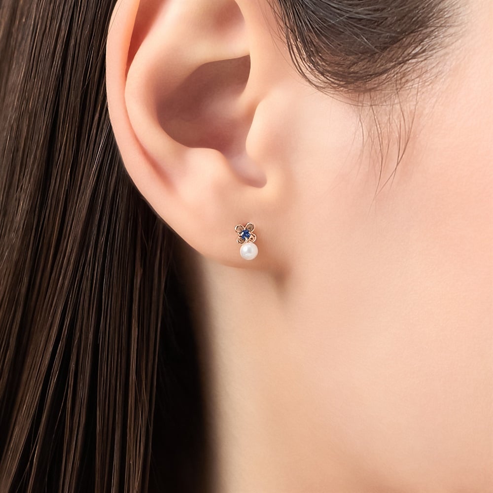 はみがき、着替え、今日のピアス -EARFLOW-自分仕様にカスタマイズ 選ぶ楽しさをその手に-CUSTOM FIT-K10ピンクゴールドの地金に、深く気品のある青色が美しいサファイアと淡水パールをあしらった可憐な印象のピアス。お花のようなかたちにセットされたサファイアが耳元に知的な彩りを添え、その下で寄り添うパールが上品な輝きを放ちます。「慈愛」や「誠実」の意味を持つといわれる、9月誕生石サファイアを配したジュエリーは、大切なひとへのギフトやご自身のお守りとしてもおすすめです。※天然石・天然素材を使用しているため、実際の色味や風合いが異なる場合がございます。【同コレクションのアイテムはこちら】