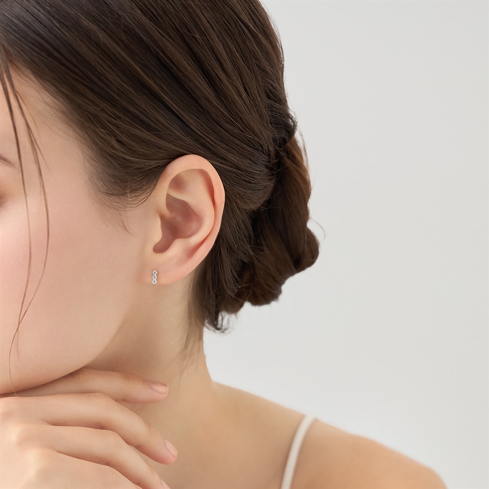 はみがき、着替え、今日のピアス -EARFLOW-フォーマルにも映える華やかさギフトにも最適-OCCASION-3石のストーンが縦に連なるK10ホワイトゴールドのスタッドピアス。シンプルでどんなコーディネートにも合わせやすく、イヤーカフなどとの重ね着けも楽しめるアイテムです。流行に左右されないデザインのため、ご自身へのご褒美や大切な人へのプレゼントとしておすすめです。【同コレクションのアイテムはこちら】