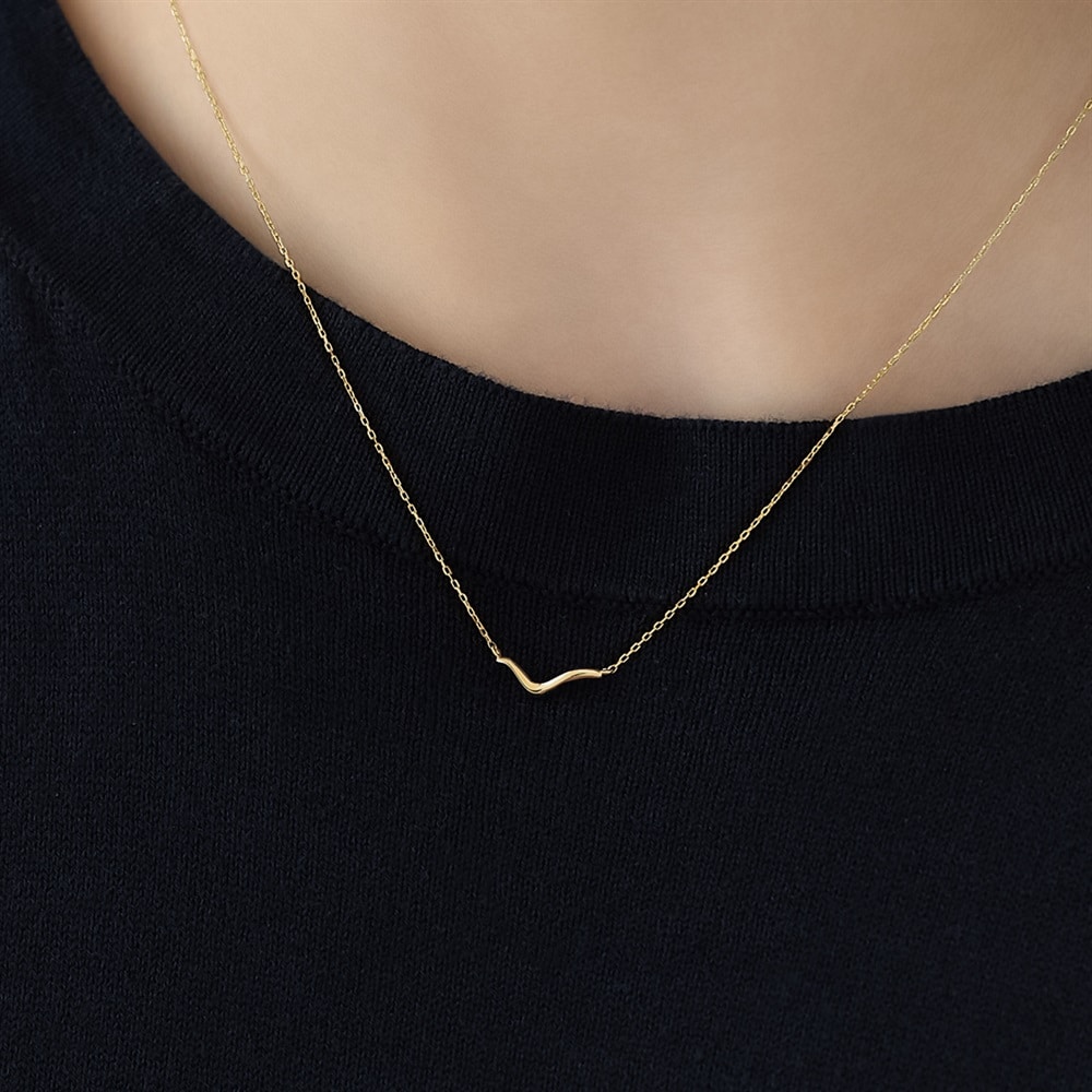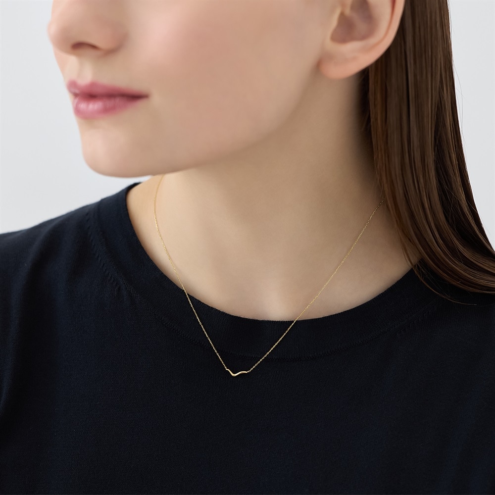 ゆるやかなカーブを描いたシンプルなU字ネックレス。アシンメトリーなフォルムはトレンド感のある雰囲気に。デイリーユースにおすすめのアイテムです。【K7-Classic Gold-】 もっと多くの人々にゴールドを楽しんでいただきたいという思いから、Canal 4℃が独自で配合して作り上げた、Classic Gold(クラシックゴールド)。通常のイエローゴールドに比べて、淡くやわらかさを感じるクラシックゴールドは、肌なじみが良く身に着けやすいカラーです。 初めてイエローゴールドをお選びになられる方にも挑戦しやすく、ピンクゴールドがお好きな方にもおすすめなカラーです。