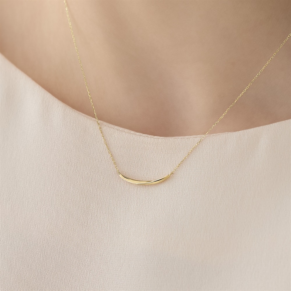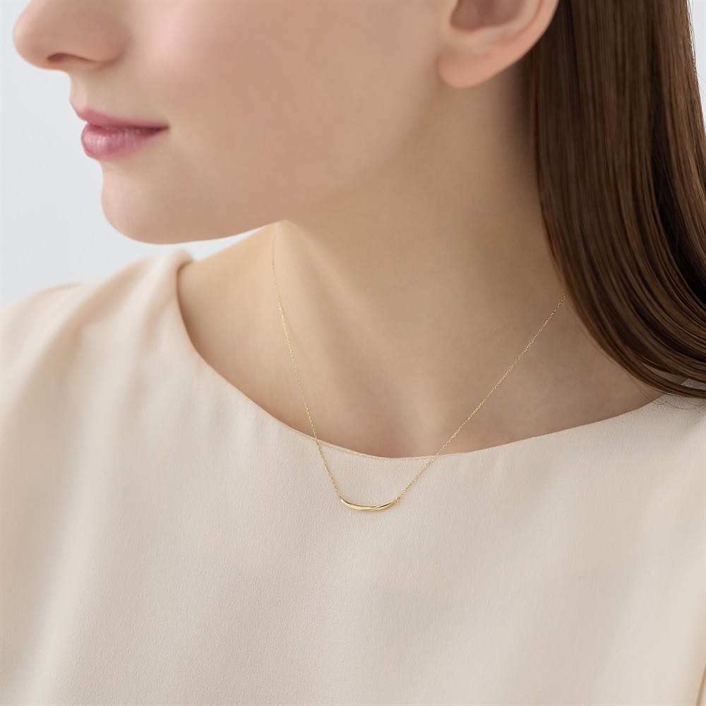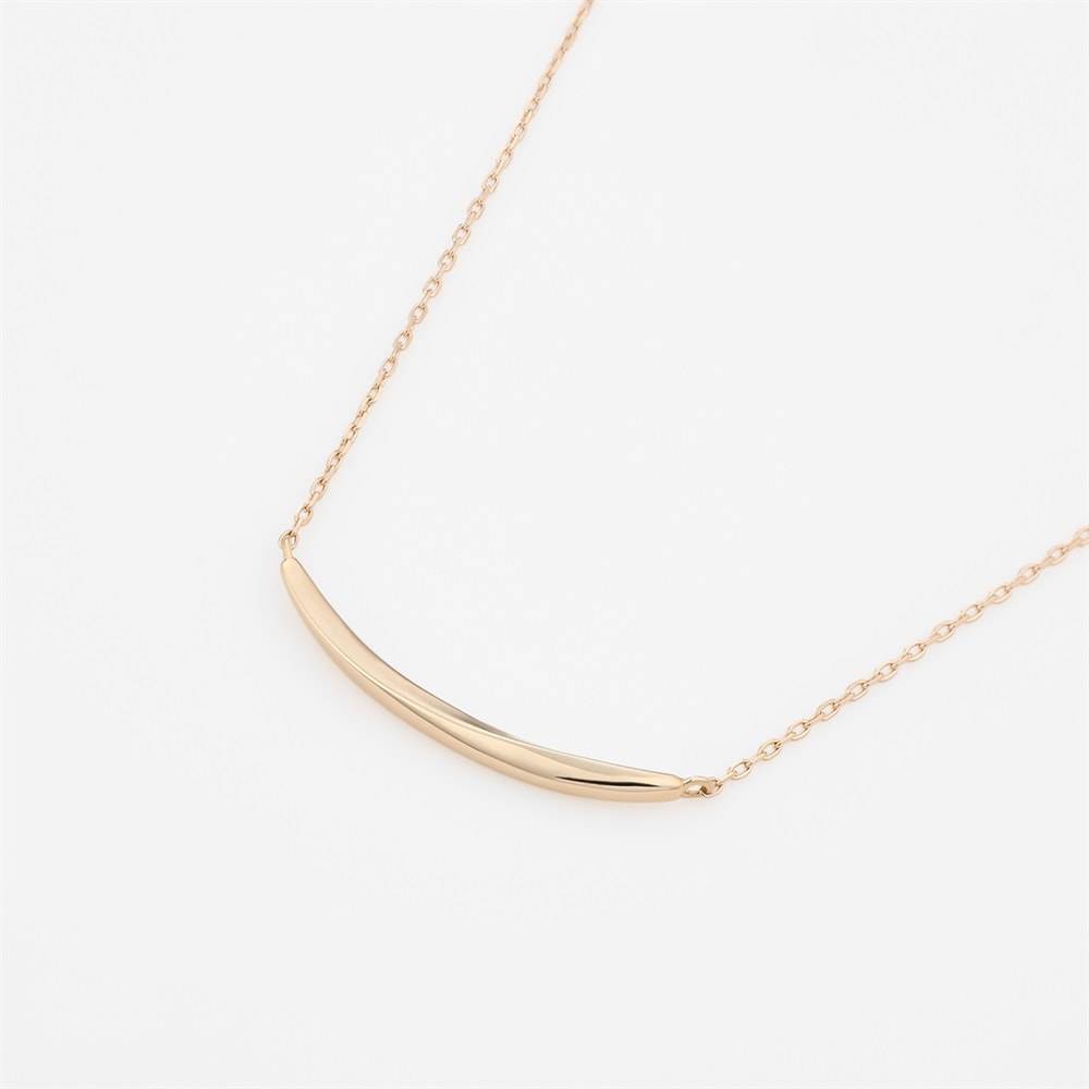 胸元に沿うように描かれたU字ネックレス。翻りのあるフォルムがアクセントになっています。どんなスタイリングにも自然になじむので、デイリーユースにおすすめです。