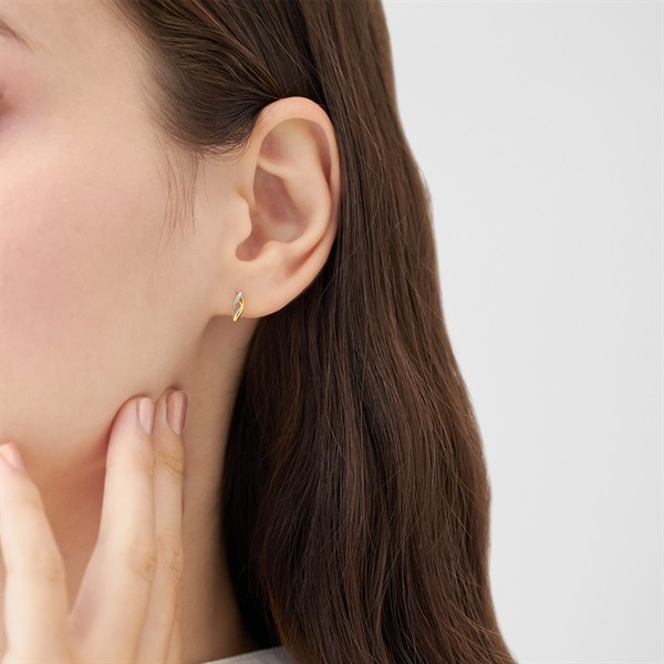 プラチナとK18イエローゴールドの2つのカラーが楽しめるコンビカラーのピアス。 流れるような流線形が美しいデザイン。コンパクトなサイズ感なのにボリューム感があるので、顔周りのアクセントとしておすすめなアイテム。