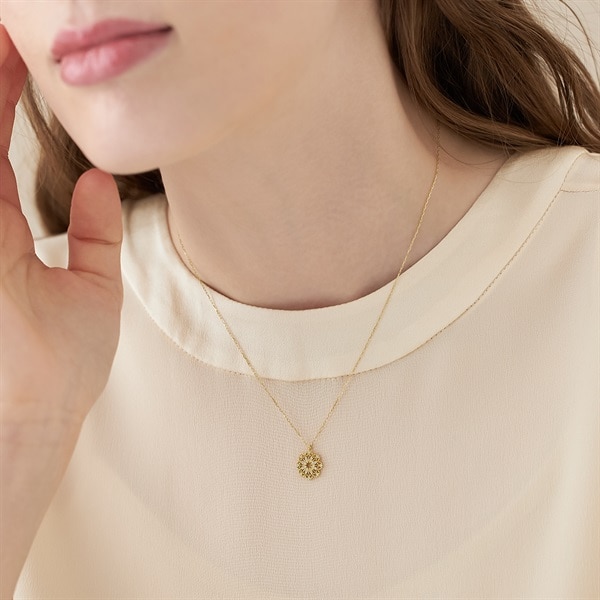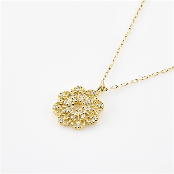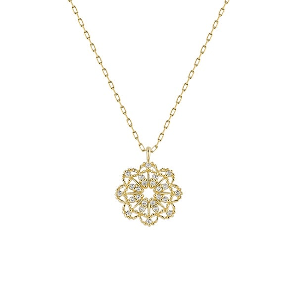 Holiday Collection一覧はこちら ><La cathédrale bleue〜 青の聖堂〜>教会ファサード(正面)に設けられた、バラをモチーフしたK10ネックレス。極限まで繊細に仕上げた透かし細工はまるで聖堂の光を宿したかのように胸元で煌めき、気品と存在感を放ちながら、身に纏うひとを一層輝かせます。上品な存在感で日常にさり気ない華やぎを添えるアクセントとしても、大切なひとへのギフトとしてもおすすめです。【数量限定ケース付き】なくなり次第終了※ショッピングバッグ内の画像が限定ケースではない場合、限定ケースのお取り扱いは終了しております。【購入特典 なくなり次第終了】こちらのジュエリーをご購入のお客さまに、オリジナルツリーライトをプレゼント。※ショッピングバッグ内にノベルティの画像が表示されていない場合、ノベルティのお取り扱いは終了しております。