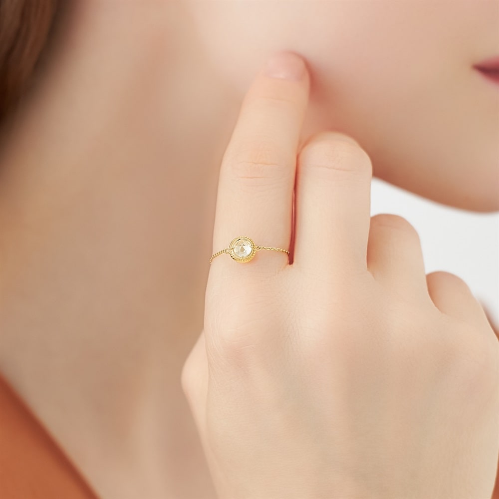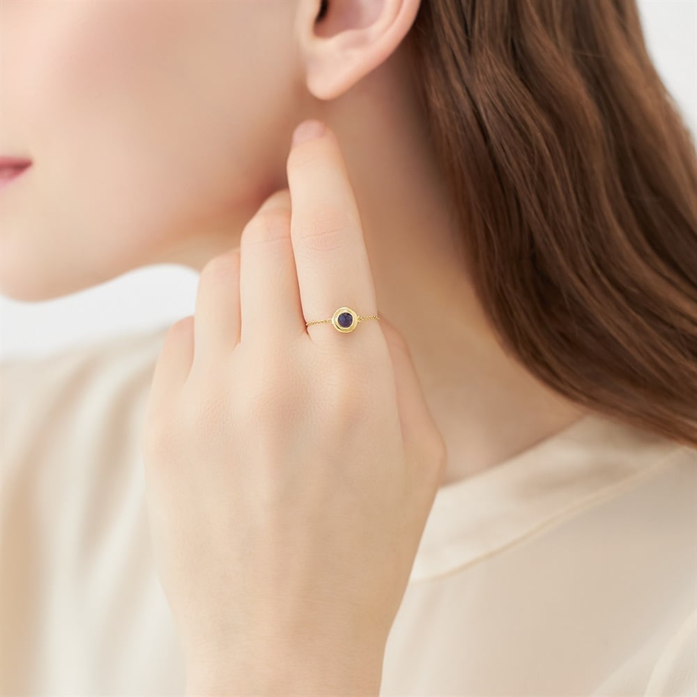 <Voeux Secrets 〜密かな願い〜>胸の奥に秘めた願いを、静かな輝きに変えて。新しい年を彩る希望に満ちたミニコレクション。表にアイオライト、裏にトパーズをあしらったリバーシブルのK10チェーンリング。アイオライトは青が映えるすっきりとしたフクリン留めに、トパーズはクラシカルな雰囲気を添えるミルを施し、煌めきを引き立てる爪留めに仕上げています。アイオライト は3月の新誕生石で石言葉は、「行くべき道を示す」。トパーズは11月の誕生石。石言葉は「真実の愛」「友愛」サイズフリーで、お好きな指に着けられる万能アイテムです。※天然石・天然素材を使用しているため、実際の色味や風合いが異なる場合がございます。[数量限定ケース付き] なくなり次第終了