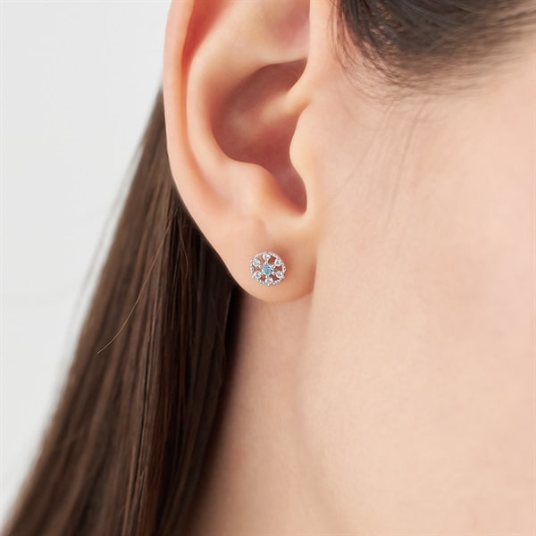 雪の結晶をイメージした繊細なピアス。澄んだブルーが美しいブルートパーズが、肌の上で凛とした輝きを放ちます。ブルートパーズは「希望」「誠実」を意味します。ミルグレインの気品ある粒がクラシカルな美しさを際立たせます。日常にさり気なく華を添える、特別なデザインはギフトにもおすすめ。※天然石・天然素材を使用しているため、実際の色味や風合いが異なる場合がございます。