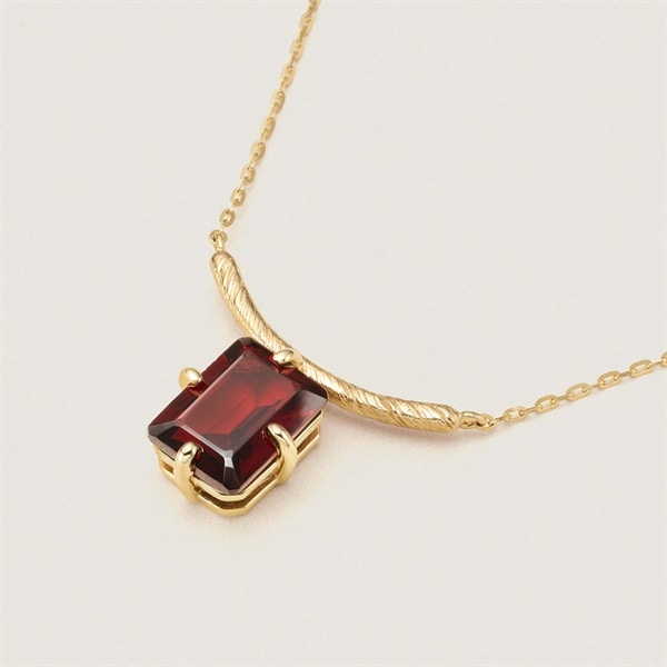 1月の誕生石、ガーネットのネックレス。ガーネットは「情熱」「勝利」「実り」などの石言葉があります。存在感のある深紅のカラーはデコルテをぐっと華やかな印象にしてくれます。大切な方へのギフトにもおすすめです。 【ガーネット】赤く透明な鉄ばんざくろ石(十二面体や二十四面体の鉱物)をガーネットと呼びます。大変歴史の古い石で、エジプトでは紀元前3000年以上前に象眼などのガーネットジュエリーが広まっていたとされています。また、中世では疾患を治したり怒りを収めるものと考えられていました。 ※天然石・天然素材を使用しているため、実際の色味や風合いが異なる場合がございます。