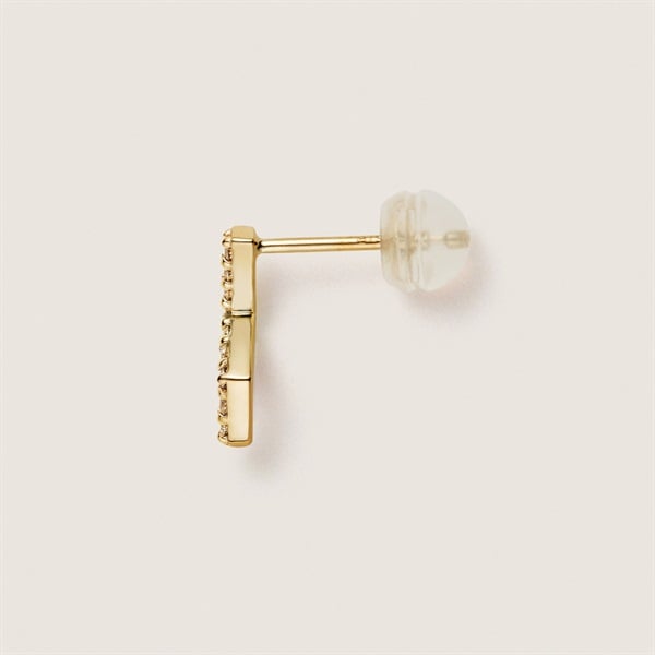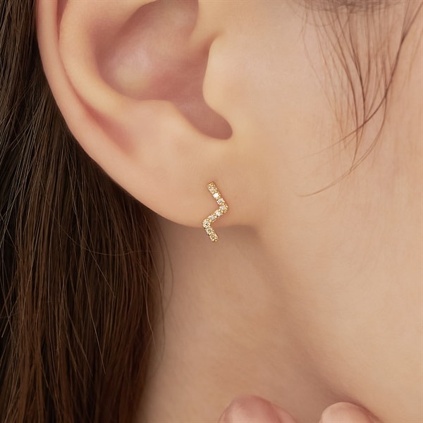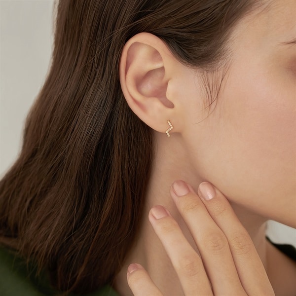 オリジナリティのあるフォルムのダイヤモンドピアス。ミニマムサイズながらも存在感があり目を引くデザインです。シンプルなイヤーカフとのレイヤードもおすすめです。【ダイヤモンド】地下150~250キロメートルのマグマの中で生まれ、火山の爆発によって地表近くまで押し上げられた鉱物。炭素が隙間なく固くつながりあうことで、高い硬度となっています。その硬さから「永遠の愛の宝石」とも言われています。無色透明なダイヤモンドが一般的ですが、不純物の種類によって黄色~緑~青~ピンクなど様々なバリエーションが見られます。※天然石・天然素材を使用しているため、実際の色味や風合いが異なる場合がございます。
