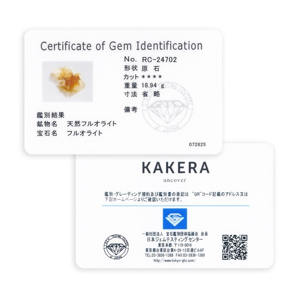 KAKERAが厳選した鉱物「STONE GALLERY」コレクション。 【フルオライト】様々な色合いを持ち、カラーチェンジや蛍光するものなど種類も豊富でコレクターも多い鉱物です。熱すると青く発光したりパチパチとはじけ飛ぶ性質があり、その様子が蛍が飛び交う光景に似ていることから、和名「蛍石」と呼ばれています。 ※こちらは一点物の商品です。 ※鑑定カード・オリジナル専用ケースが付属します。 ※画像の鉱物そのものを発送いたしますが、天然石のため実際の色味や風合いが異なる場合がございます。
