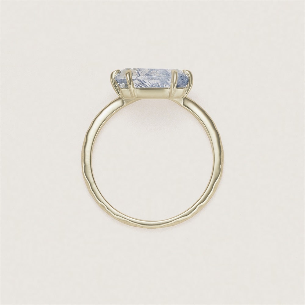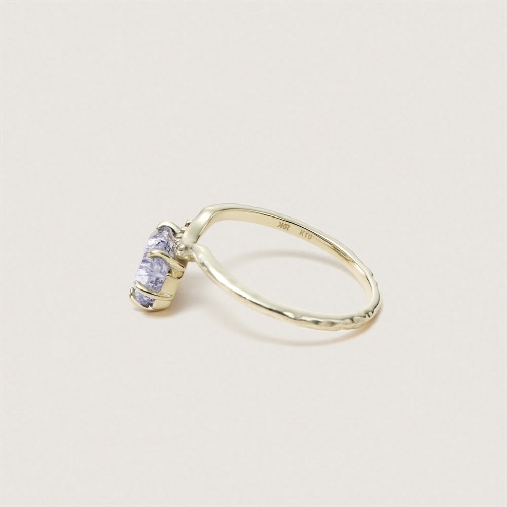 世界にひとつだけの特別なコレクション。 デュモルチェライトという青色の鉱物が内包されたクォーツ(デュモルチェライトインクォーツ)を留めたリング。凍った湖面のような表情が幻想的な印象です。ダイヤモンドを添えてリュクスな雰囲気に。1つで手元のアクセントになるリングです。【クォーツ】和名は「石英」と呼ばれ、スラブ語の「tward(硬い)」が語源の、地殻から産出される最もポピュラーな鉱物のひとつです。古来では、クォーツは神が創造した氷であると考えられていました。透明度の高い石英はロッククリスタル(水晶)と呼ばれ、アメシストやローズクォーツなどの色に合わせた宝石名がついています。※デュモルチェライトインクォーツは含侵処理を施しています。※こちらは一点物の商品です。※画像のジュエリーそのものを発送いたしますが天然石・天然素材を使用しているため、実際の色味や風合いが異なる場合がございます。※ボリューム(幅)のあるリングは、通常より着用時にサイズが小さく感じる場合がございます。