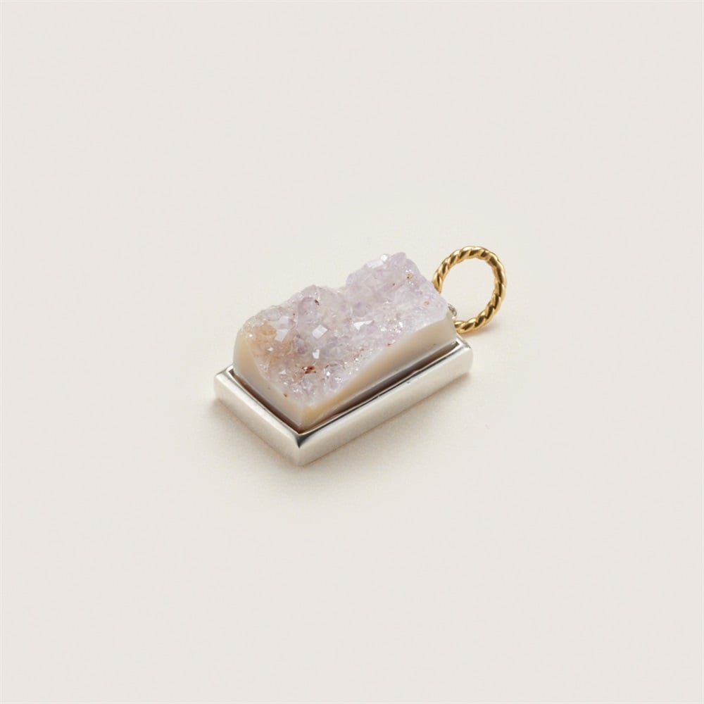 世界にひとつだけの特別なコレクション。 ナチュラルなフォルムのアゲートコンビネーションチャーム。一点物ならではの個性あふれるアゲートを、デザインを削ぎ落したシンプルなシルバーの台座に留めました。表面の結晶がキラキラと輝き、デコルテを美しく演出します。様々なチェーンと組み合わせてお好きなスタイリングをお楽しみいただけます。 【アゲート】特有の縞模様を持つ鉱物で、水晶と同じ「石英」のカテゴリーに入ります。和名は「めのう」。古来より世界中で産出され、加熱処理加工や染色加工をほどこし、装飾品等に使用されてきました。ローマ時代には、アゲートのインタリオを使用したシグネットリングが流行しました。【コーディネートアイテム】 品番:342346162003 チェーンはこちら > ※こちらは一点物の商品です。 ※画像のジュエリーそのものを発送いたしますが天然石・天然素材を使用しているため、実際の色味や風合いが異なる場合がございます。