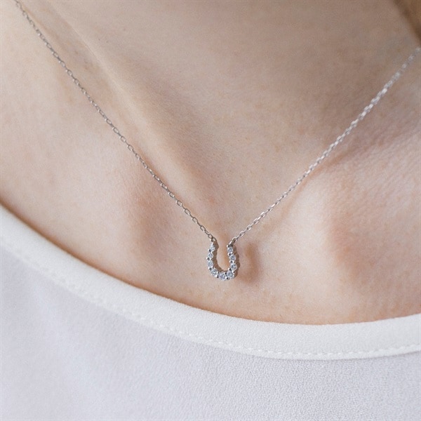 ダイヤモンド一粒一粒の輝きが際立つ馬蹄モチーフのネックレス。プラチナの深みのある色合いが上品な胸元を演出します。幸せを受け止めるといわれる馬蹄モチーフは、お守りジュエリーとしてもおすすめです。【限定ケース付き】なくなり次第終了※ショッピングバッグ内の画像が限定ケースではない場合、限定ケースのお取り扱いは終了しております。※仕様上、限定ケースに商品をお包み出来かねる場合は巾着のケースにお入れし限定ケースは別添えでお付けいたします。【先着数量限定ノベルティ】こちらの商品をご購入のお客さまに、「プラチナ・ウーマン」ラゲージタグをプレゼントいたします。[数量限定] なくなり次第終了※公式オンラインショップでご購入の方のみ対象となります。※ショッピングバッグ内にノベルティの画像が表示されていない場合、ノベルティのお取り扱いは終了しております。※「プラチナ・ウーマン」は国内のリーディングジュエリープロジェクト各社とプラチナ・ギルド・インターナショナル株式会社が共同で立ち上げたプロジェクトです。自身に正直にあり続ける女性たちの自然な気持ちを後押しし、より輝かせるジュエリーです。こちらのジュエリーには「プラチナ・ウーマン」のコンセプトとプラチナジュエリーの魅力をお伝えするリーフレットを付属いたします。【馬蹄モチーフ】同モチーフのおすすめはこちら >