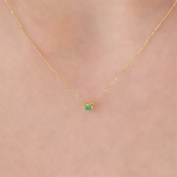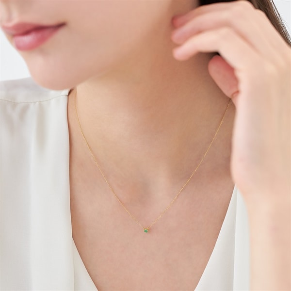 バースストーンを1粒留めた“Bouquet”シリーズ。 4枚の花びらが誕生石を優しく包み込む。そんなイメージでデザインしたK10ネックレス。誕生石を色とりどりの花に見立て、身を寄せ合う姿はまるで花束のよう。そんな姿から“Bouquet”と名付けました。幸せな未来をもたらすといわれる5月の誕生石エメラルドが胸元を華やかに彩ります。 ※天然石・天然素材を使用しているため、実際の色味や風合いが異なる場合がございます。