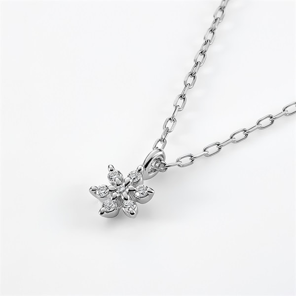 ホリデーシーズンに向けた、ギフトにもご自身へのご褒美にもおすすめのシリーズ。雪の花のように7石寄せたプラチナネックレス。ダイヤモンドの輝きと相まった上品で華やかなデザインです。 繊細ながらも目を惹く、毎日を少し特別にしてくれるようなアイテムです。※天然石・天然素材を使用しているため、実際の色味や風合いが異なる場合がございます。