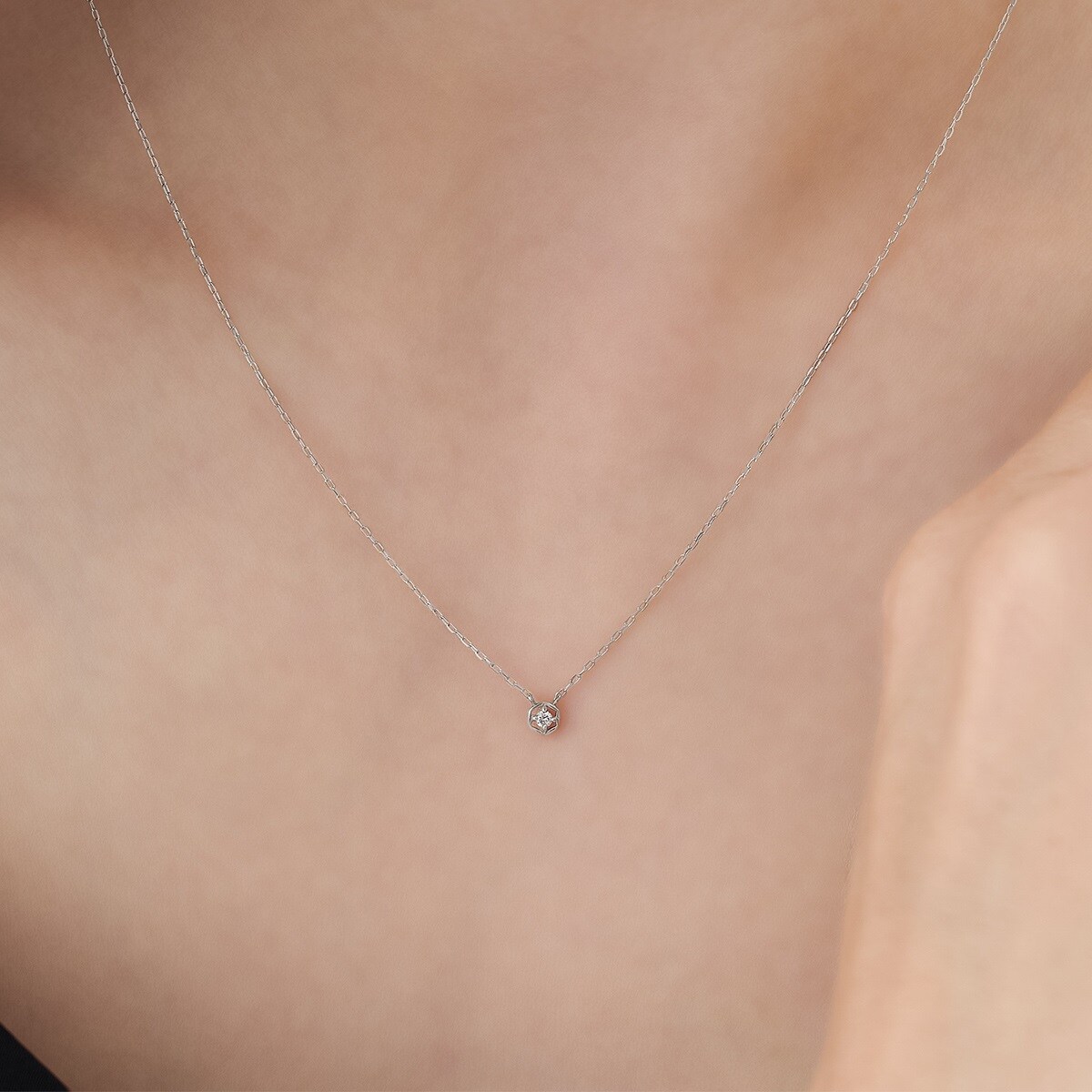 Holiday Collection一覧はこちら >〈Lucentveil〉静寂に包まれた冬の朝、透き通る光と雪の煌めきを纏ったホリデーコレクション。雪の結晶を思わせるやわらかな六角形のシルエットが魅力のプラチナのネックレス。透かし部分には光を纏うような繊細さを取り入れ、角度によって異なる表情を楽しめます。シンプルで上品な佇まいはさり気なく個性を演出しながらも、シーンを選ばず身に着けられるのが魅力です。選べる3カラー展開で、日常に洗練された輝きを添えてくれます。 [シルバーグレーの霜のような光沢のあるベロアの数量限定ケース付き] なくなり次第終了※ショッピングバッグ内の画像が限定ケースではない場合、限定ケースのお取り扱いは終了しております。