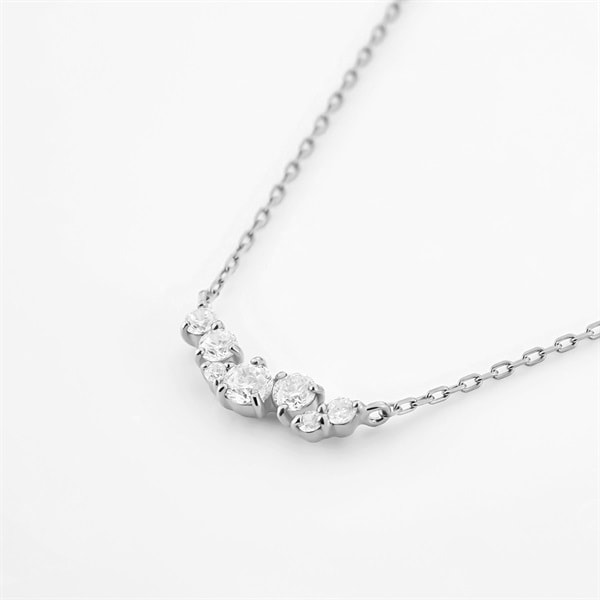 ホリデーシーズンに向けた、ギフトにもご自身へのご褒美にもおすすめのシリーズ。キュービックジルコニアをリズミカルにセッティングした横並びのネックレス。繊細でランダムなバランス感が石の輝きを引き立ててキラキラと胸元で輝きます。重ね着けにもおすすめです。