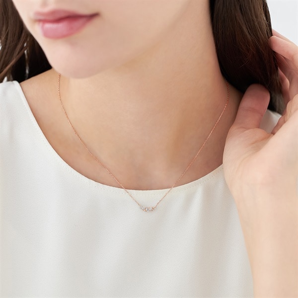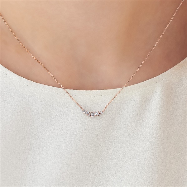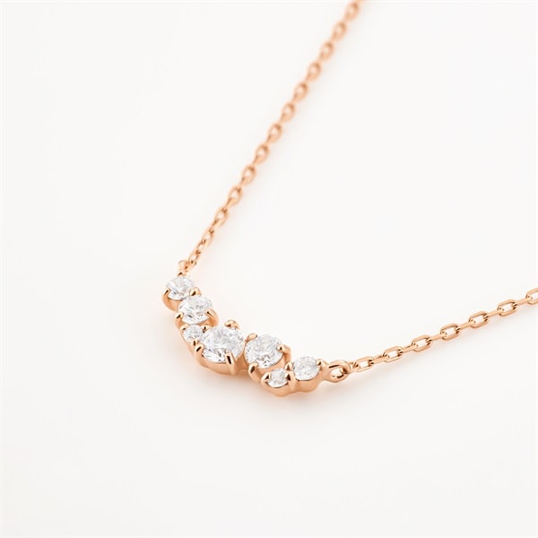 ホリデーシーズンに向けた、ギフトにもご自身へのご褒美にもおすすめのシリーズ。キュービックジルコニアをリズミカルにセッティングした横並びのネックレス。繊細でランダムなバランス感が石の輝きを引き立ててキラキラと胸元で輝きます。