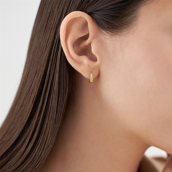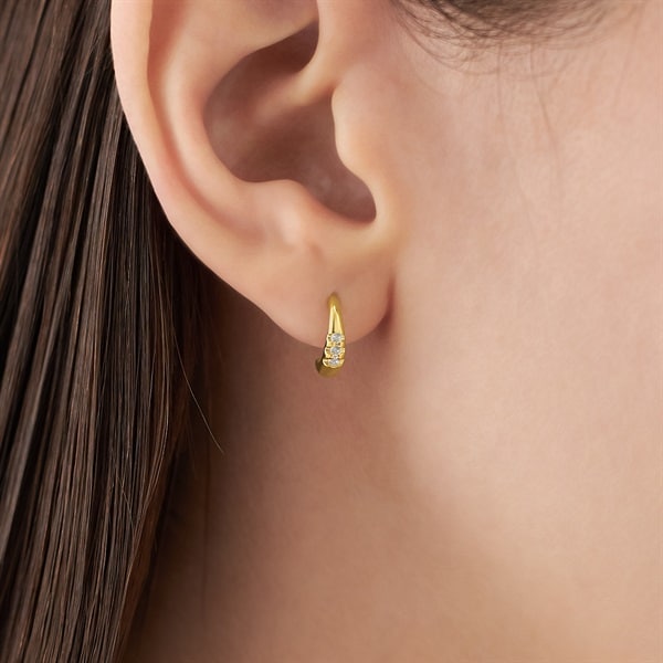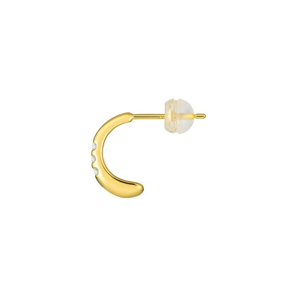 耳に寄り添う美しいフォルムが魅力のイエローゴールドコーティングのピアス。ホワイトトパーズの上品な輝きが魅力です。選べる3色展開で、自分らしいスタイルや気分に合わせてコーディネート可能です。シンプルながらもモダンなフープデザインで、日常にさりげない華やかさをプラスするアイテムです。