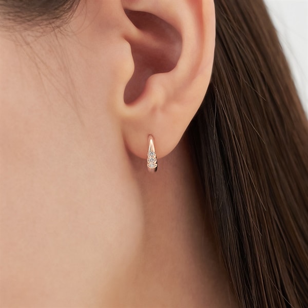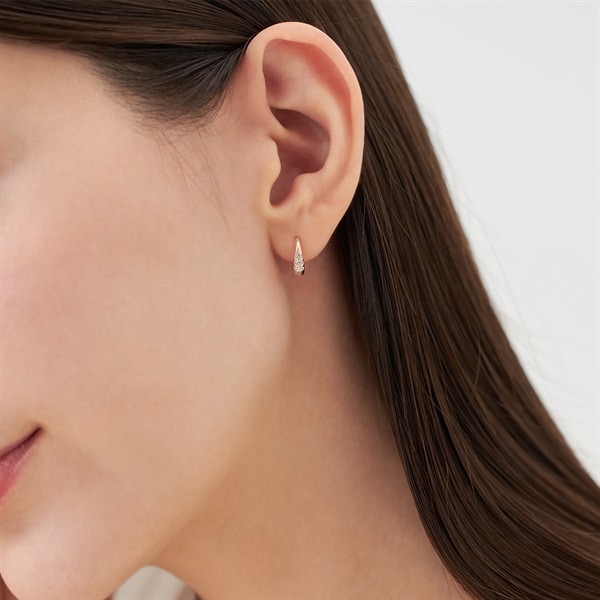 耳に寄り添う美しいフォルムが魅力のピンクゴールドコーティングのピアス。ホワイトトパーズの上品な輝きが魅力です。選べる3色展開で、自分らしいスタイルや気分に合わせてコーディネート可能。シンプルながらもモダンなフープデザインで、日常にさり気ない華やかさをプラスするアイテムです。