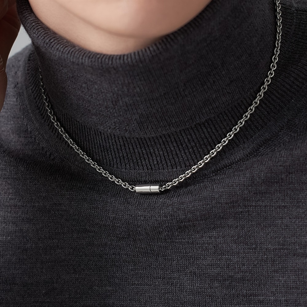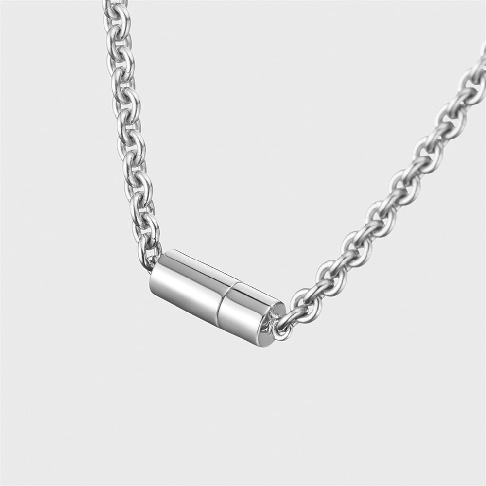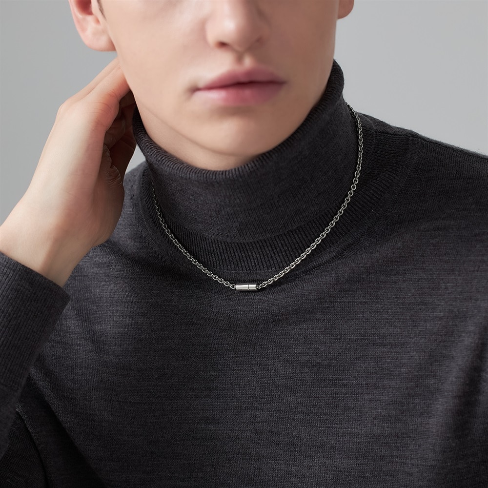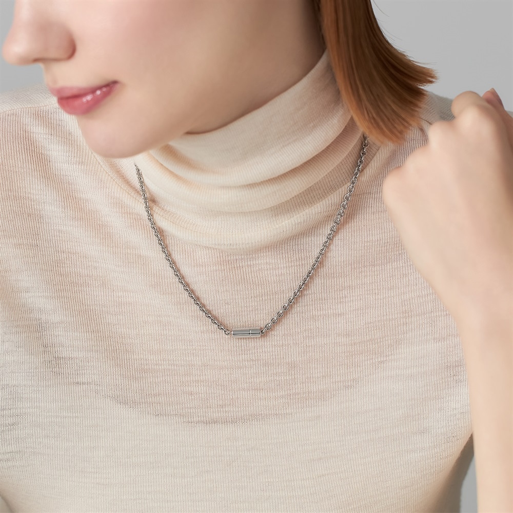 【CHAIN】 マグネットが仕込まれた2つの円柱パーツが引き寄せ合い、ジョイントするボールチェーンネックレス。マグネットのクラスプが煩わしい着脱をアシストしてくれます。シルバーにほどこされたプラチナコーティングがリッチで上質な印象を与えます。 <お取り扱い上の注意事項> ※着脱の際は、チェーンではなくパーツを持って着脱してください。 ※心臓ペースメーカーなどの電子医療機器を装着されている方のご使用はご遠慮ください。 ※精密電子機器には近づけないようにご注意ください。 ※商品の仕様上、細かい擦り跡が他製品と比較して目立って見えることがございます。 手作業で製作を行う都合上、避けることができかねるためあらかじめご了承ください。