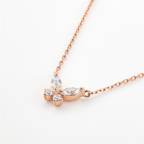 ホリデーシーズンに向けて華やかなスタイリングが叶うシリーズ。 蝶をモチーフにしたネックレス。キュービックジルコニアが輝くネックレスは、ピンクゴールドコーティングをほどこすことでより可憐な印象に。美しい羽根を広げて飛ぶ蝶は、さなぎから成長する姿から復活や変身、美の象徴とされ、大切な方へのプレゼントとしてもおすすめです。
