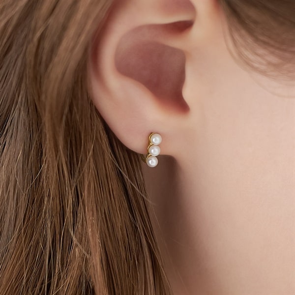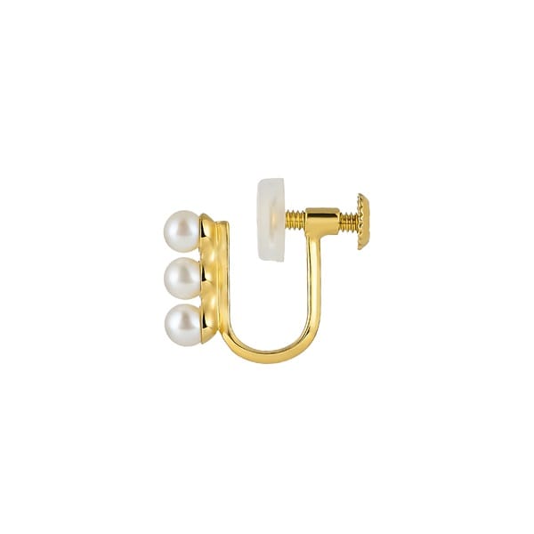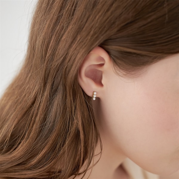 ホリデーシーズンに向けて華やかなスタイリングが叶うシリーズ。 デイリーに使いやすいプチパールを三石使用したモードなイヤリング。程よい華やかさと上品さで、カジュアルなスタイリングからフォーマルまで、どのようなスタイリングにもマッチしてくれる、頼れるアイテムです。大切な方へのプレゼントにもおすすめです。※天然石・天然素材を使用しているため、実際の色味や風合いが異なる場合がございます。