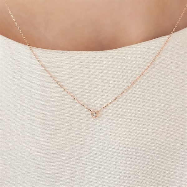 ホリデーシーズンに向けた、ギフトにもご自身へのご褒美にもおすすめのシリーズ。花の蕾のようなデザイン石座のK10ダイヤモンドネックレス。爪で石を包み込むようにセッティング。 胸元でさりげなく輝く、デイリーにも使いやすいアイテムです。ギフトにもご自身へのご褒美にもおすすめです。※天然石・天然素材を使用しているため、実際の色味や風合いが異なる場合がございます。