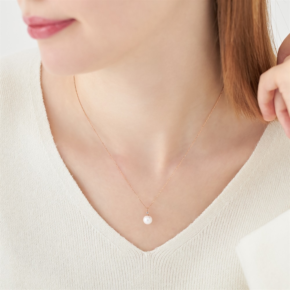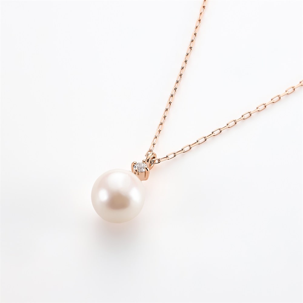 やわらかな光が魅力のアコヤパールとホワイトトパーズをセッティングしたK10ピンクゴールドのネックレス。パールの石言葉は純潔・円満・健康。世代を問わず永くご愛用いただける、シーンレスに着用できるおすすめのデザインです。 ※天然石・天然素材を使用しているため、実際の色味や風合いが異なる場合がございます。